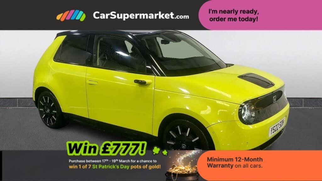 Adaptive Cruise Control, Cruise Control, Blind Spot Monitoring, Bluetooth, Parking Sensors, Lane Departure Warning, Traffic Sign Recognition, Privacy Glass, Heated Front Seats, Heated Steering Wheel;A distinctive all-electric Honda e Advance finished in yellow, offering futuristic styling with smooth and quiet electric performance. The vehicle features adaptive cruise control, cruise control, blind spot monitoring, Bluetooth connectivity, parking sensors, lane departure warning and traffic sign recognition. Additional comfort features include privacy glass, heated front seats and a heated steering wheel which make the cabin both modern and comfortable.