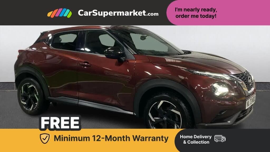 Apple CarPlay, Android Auto, Lane Departure Warning, Sat Nav, Traffic Sign Recognition, Bluetooth, Digital Radio, Privacy Glass, Automatic Climate Control;The Nissan Juke 1.0 DiG-T 114 N-Connecta DCT in red (NL73MDU) comes with Apple CarPlay, Android Auto, lane departure warning, satellite navigation, traffic sign recognition, Bluetooth, digital radio, privacy glass, and automatic climate control.