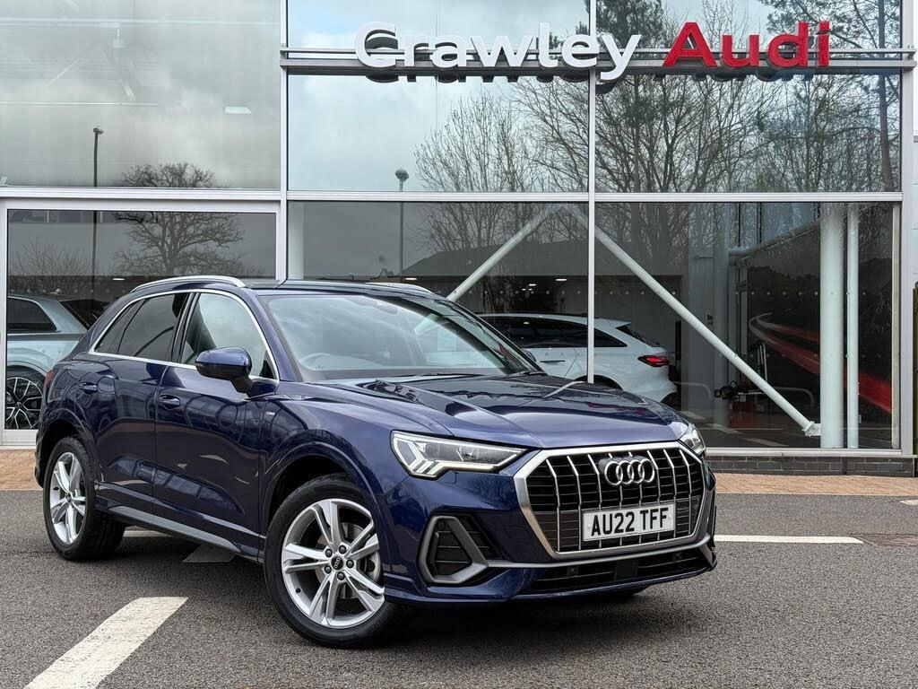 1 OWNER FROM NEW, COMFORT AND SOUND PACK INCLUDING, PARKING SYSTEM PLUS, REVERSING CAMERA, SONOS 3D PREMIUM SOUND SYSTEM, HEATED FRONT SEATS, LED HEADLIGHT PACK WITH FRONT AND REAR LED LIGHTS, TWIN LEATHER UPHOLSTERY, ISOFIX MOUNTING POINTS, AUTOMATIC OPENING BOOT WITH BOOT CLOSE BUTTON, AUDI VIRTUAL COCKPIT, AUDI DRIVE SELECT, AUTOMATIC LED HEADLIGHTS, CUPHOLDERS, FRONT CENTRE ARMREST, ELECTRONIC HANDBRAKE WITH HILL HOLD ASSIST, SATNAV, DUAL ZONE CLIMATE CONTROL, ULEZ COMPLIANT, APPLE CARPLAY & ANDROID AUTO, MULTI FUNCTION STEERING WHEEL, BLUETOOTH, CRUISE CONTROL, REAR PRIVACY GLASS All Audi Approved used cars are offered with a 12-month warranty and roadside assistance. Crawley Audi are delighted to offer our Audi Q3 in Navarra Blue. We are proud to be part of the Harwoods group, a family run business established in 1931. with four approved Audi retailers within our group, we have access to over 400 vehicles. If this isn't the right car for you our Group stock has spec to include Sunroof, Leather, Heated Seats, Apple Car Play, Heated Steering Wheel, Reverse Camera, Rear Entertainment, Towbar, 360-degree camera, Comfort & Sound Pack, Tech Pack, Panoramic Sun Roof, Tow Bar, Black Pack, Air Suspension, Apple CarPlay, Adaptive Cruise, Massage Seats, Refrigerator, AWD, Technology Pack, Head up Display, Vorsprung, Technik, Black Edition, S-Line, S Line, Edition 1, TFSI, Quattro, Sportback, LWB. Other colour options including Black, Blue, Green, Silver, White, Red, Grey, Yellow, Orange, Interior options of Ebony, Black, Ivory, White, Tan, Cream, Oyster, & Euro 6 ULEZ compliant drive trains.-REVERSING CAMERA, SATNAV