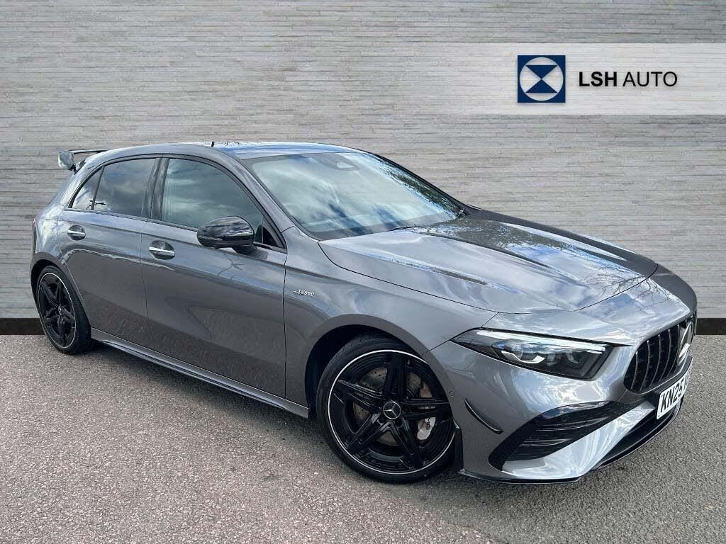 This Mercedes Benz A Class A35h AMG (Premium Plus) is a manufacturer approved vehicle with a full dealership service history, having only had one owner and its last service completed on 2026-03-25 at 8528 miles. This 2025 model boasts a powerful 2.0L Petrol Hybrid engine, delivering impressive performance with four wheel drive capability and meeting Euro 6 emission standards. It comes with a 24 month warranty and its MOT is valid until March 2028, offering peace of mind for its next owner. Notable features include wireless charging for your devices and dual Bluetooth interfaces for seamless connectivity.The AMG trim of this A Class is designed for those who appreciate dynamic driving, with a remarkable 0-62mph acceleration time of just 4.7 seconds, setting it apart from many other vehicles in its class. This performance is complemented by a large boot space, making it a practical choice for everyday use and longer journeys alike. The combination of its advanced hybrid technology, sporty AMG enhancements, and comprehensive provenance information makes this Mercedes Benz A Class a compelling option.-*SUNROOF PREMIUM PLUS SAT NAV*-Mercedes-Benz A Class A35 4Matic Premium Plus 5dr Auto-LSH Auto UK Ltd - An LSH Group Company. The Worlds Largest Retailer of Mercedes-Benz Passenger Cars
