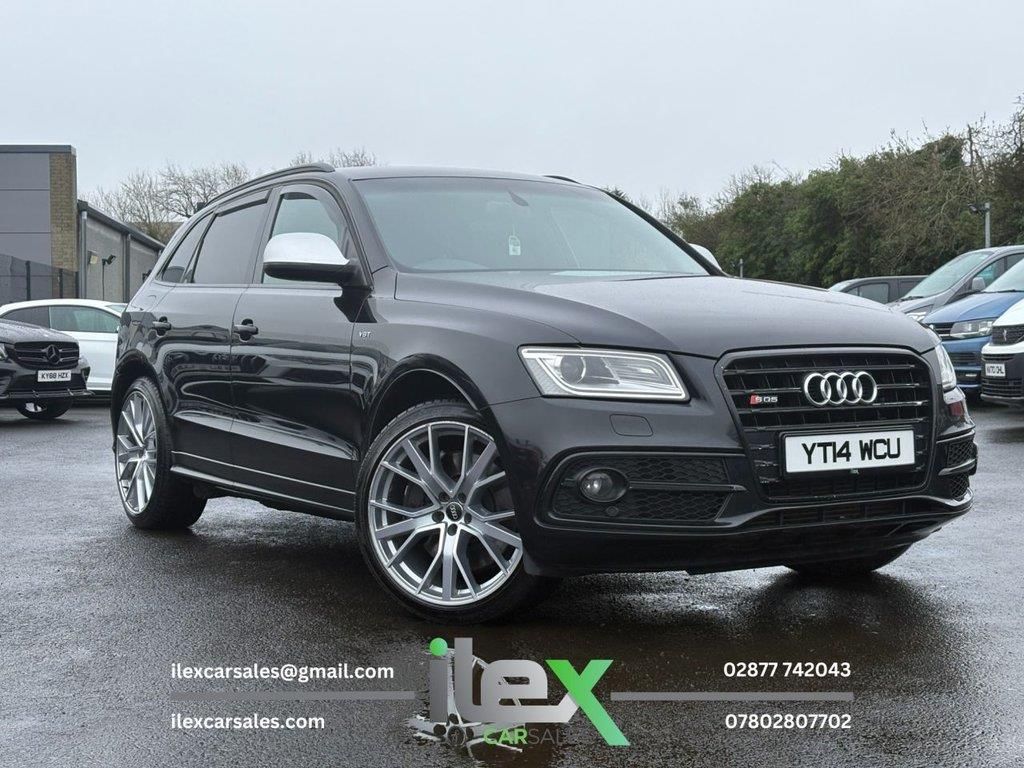 2014 Audi SQ5 3.0 BiTDI V6 quattro Tiptronic A serious performance SUV powered by the legendary 3.0 BiTDI V6 producing huge torque and effortless power. Finished in Black with quattro AWD and smooth Tiptronic automatic gearbox — a proper high-performance diesel SUV. Key Highlights: • 3.0 V6 BiTDI Diesel | Tiptronic Automatic | quattro AWD • 313PS | 143,240 Miles • SQ5 Performance Model • S Sports Suspension • Electric Front Seats with Lumbar Support • Deluxe 3-Zone Climate Control • Audi Sound System | DAB Radio • Bluetooth Connectivity • Bi-Xenon Plus Headlights • LED Daytime Running Lights • Aluminium Interior Trim • Rear Parking Sensors • S Design Body Styling • 22" Alloy Wheels (£1195 Optional Extra) An incredibly quick SUV with massive torque, quattro grip and aggressive SQ5 styling. £10,495 Ilex Car Sales 416 Ballyquin Road, Dungiven, Derry, BT47 4NQ 02877 742043 | 07802807702 www.ilexcarsales.co.uk - View all available stock there.. 12V Power Socket,20in Alloy Wheels - 5-Parallel Spoke Design,6.5in Display Screen,ABS - Anti-Lock Braking System,Acoustic Windscreen,Active Door Reflectors,Air Conditioning - Deluxe Automatic at the Rear,Airbags - Driver,Airbags - Front Passenger,Airbags - Front Side,Airbags - Head System,Alarm - Thatcham Category 1,Aluminium Roof Rails,Aluminium-Effect Door Mirror Housings,Amplifier - 6 Channel,Anti Theft Locking Wheel Bolts,Audi Sound System,Audio Sound System,Auto-Dimming Rear-View Mirror,Automatic Headlight Range Adjustment,Automatic Wipers with Rain Sensor,AUX-IN Socket,Body Coloured Bumpers,Brake Calipers - Black with S Logo,Car Jack,Cloth Headlining in Black,Collapsible Spare Wheel,Colour Drivers Information System - DIS,Concert Radio,Cruise Control,Cup Holders - Centre Console,DAB Digital Radio,Deluxe 3-Zone Climate Control,Door Mirrors - Electrically Adjustable and Heated,Door Sill Trims - Aluminium with SQ5 Embossing,EBD - Electronic Brakeforce Distribution,Electric Windows - Front and Rear,Electric