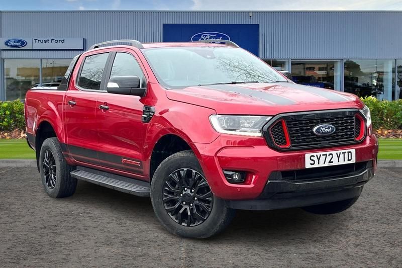 REAR VIEW CAMERA shows whats behind you on a screen in front of you on the dashboard - the system activates when you select reverse gear and using virtual guidelines can help you park, HEATED FRONT SEATS Provide comfort in any weather, QUICKCLEAR HEATED WINDSCREEN uses ultra thin filaments that superheat to de-ice and de-mist your windscreen as well as help de-freeze the wipers and works in seconds, CRUISE CONTROL provides extra comfort on longer journeys allowing you take your foot off the acceleration whilst just focusing on steering the vehicle, TRAFFIC SIGN RECOGNITION - is designed to detect road signs whether permanent or temporary located at the side or above the road It then displays the signs information including speed limits on your instrument cluster, LANE KEEPING AID uses forward looking cameras to detect if youre unintentionally drifting out of a lane - Lane keeping alert then warns you and if you dont respond the vehicle provides steering torque assistance to help guide you safely back into the right lane, BLUETOOTH HANDS FREE WITH VOICE CONTROL allows you to operate both your mobile phone and Ford audio system - controlling several functions using a set list of simple voice commands, FRONT AND REAR PARKING SENSORS are designed to help you park more confidently helping you judge the distance between your vehicle and obstacles both in front and behind you, 18 Fully painted black alloy wheels with 18 alloy spare wheel, Dual power heated fold back door mirror with puddle lamp and signal, Dual control system - Electronic air temperature control (EATC), Immobiliser, Roof rails, Engine start/stop system, Rear mudflaps, Privacy glass, Underbody protection, Trip computer, Reach and rake adjustable steering column, Leather gearknob, Tie down rails and rope hooks, Automatic headlights, Locking wheel nuts, Spare wheel lock, Electrochromic interior mirror, Electric power assisted steering, Daytime running lights, Lane keeping aid, Under hood engine cover, Leather door trim panel insert, 2 key fob, Side step with brushed inserts, Centre console coolbox, Seatbelt reminders for driver and front passenger, Tyre pressure sensors, Emergency brake assist, Driver and front passenger airbag, Collision mitigation braking system, Traffic sign recognition, Chrome interior door handle, Passive anti theft system, Electrically operated windows with one shot driver's window, Heated windshield and rear window, Rain sensitive windshield wipers, ABS, ESP and roll over mitigation, Locking rear axle, Intelligent speed assistant, Power converter, Body coloured plastic front bumper, Moulded in colour tailgate handle, Rear bumper step in boulder grey, Front splash guard and mud flaps, Tailgate - Easy-lift/lower mechanism, LED Front fog lamp, Sport leather stitched steering wheel, Roof storage for driver sunglasses, LED ambient interior lighting, Load box bedliner including power point and tie down hook, ICE feature pack 129 - Ranger, 3 point inertia rear seatbelts, side airbag, curtain airbag and driver knee airbag, ISOFIX child safety seat attachment, Driver seat back mounted map pocket, Heated front seat, Power adjustable 8 way driver seat, Passive keyless entry and start system, Power tailgate lock, Double locking power door lock with flip key, Boulder grey radiator grille, High mounted stop lamp with cargo area light, Ebony headliner, Journey grain partial leather upholstery with Wildtrak logo, Thatcham category 1 alarm security system, Fixed rear view camera, Sports bar, Premium front and rear floor mats, LED projector headlamps, Ebony black door mirrors, 3D Stormtrak badges, Ebony black lower skid plates, fender vent and door handles, Ebony black sports hoop and rear bumper caps, Unique decal packs on bonnet, bodyside and tailgate, Unique red interior stitching, STORMTRAK, ULEZ COMPLIANT, ULEZ, 4X4, NATIONWIDE DELIVERY AVAILABLE, EURO 6, CAMERA, AIR CON, AIRCON, AIR CONDITIONING