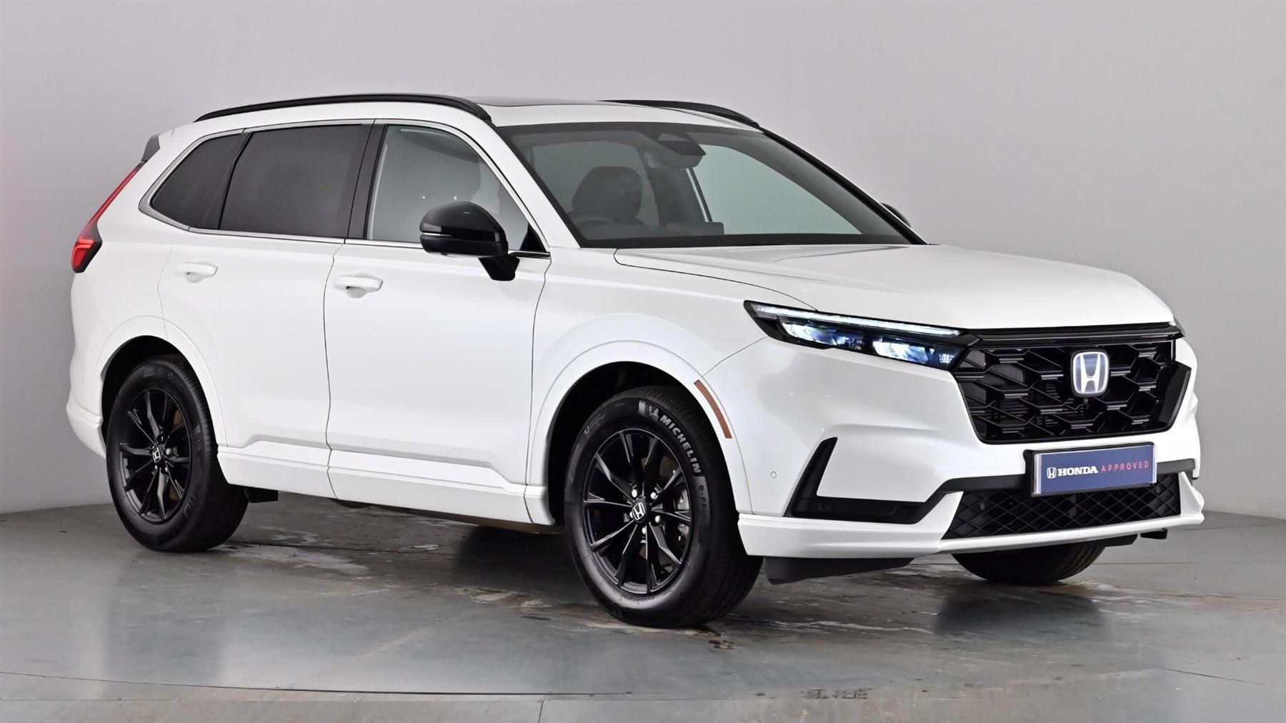 Honda CONNECT navigation with My Honda+ 9" touchscreen, AM/FM/DAB, Apple Carplay and Android Auto, live traffic info, Privacy glass, Panoramic opening glass sunroof, LED Headlights, Adaptive cruise control with Cornering speed assist, Honda parking pilot, Lane departure warning system, Head up Display, Exterior Features, Auto wipers, Front and rear electric windows, Privacy glass, Rain sensor, Rear wiper, Adaptive performance damper, Vehicle stability assist, Black paint + exculsive grille, Black Shark-fin antenna, Body colour bumpers, Body colour door handles, Body colour plus black colour roof spoiler, Exhaust pipe finisher, High gloss black window garnish, Panoramic opening glass sunroof, Rear side wing doors, Roof rails, Active cornering lights, Adaptive driving beam, Auto headlight adjuster, Auto headlights, Front LED Indicator lights, Front turn type led with sequential, Headlight auto on/off timer, LED 3rd brake light, LED daytime running lights, LED front fog lights, LED Headlights, LED rear lights, Welcome home function, Safety, ABS/EBD, Brake assist function, Collision mitigation braking system, Electronic parking brake with auto hold, Front and rear collision mitigation throttle control, Hill descent control, Hill start assist, Low speed brake system, Paddle deceleration control, 4 x front 4 x rear 4 x side parking sensors, Active lane change assist, Adaptive cruise control with Cornering speed assist, Adjustable speed limiter, Agile handling assist, Crossing traffic warning front, Drive Mode (EV,Econ,Sport,Normal,Snow,Tow), Driver attention monitoring system, Electric power steering, Emergency stop signalling system, Forward collision warning, HEV mode, Honda 360 sensing, Honda parking pilot, Intelligent speed limiter, Lane change collision mitigation, Lane departure warning system, Lane keep assist system, Lane watch, Lead car departure notification system, Low speed following, Road departure mitigation, Traffic sign recognition, Auto dimming rear view mirror, Black door mirror caps, Electrically adjustable and heated door mirrors, Electrically folding door mirrors, Exterior mirror tilt for reverse, Multi view camera system in door mirrors, 5 x 3 point seatbelts, Anti-whiplash front headrests, Deflation detection system, Driver airbag, Driver SRS airbag (single stage inflation), Front and rear curtain airbags, Front and rear seat belts with emergency locking retractor (ELR), Front centre airbag, Front passenger airbag, Front side airbags, Knee airbags (DR) and (AS), Manual child lock in rear doors, Passenger SRS airbag with cut off switch, Rear side airbags, Audio / Communications, Bluetooth hands free telephone connection, E-call, eCall emergency call system, Wireless apple carplay, Wireless charging, 12 speakers, 1X USB (A/2.5A) and 1x Charger (C/3A) on Front, Bose premium sound system, Centre speakers, DAB+ radio, Dashboard centre speaker, Front tweeters, Rear USB 2x Charger (C/3A), Steering wheel mounted controls, Subwoofer, Driver Convenience, Handfree power tailgate with kick sensor and walk away close, Power meter, Miscellaneous, 10.2" Multi information display, BLIS (Blind Spot Information System) with Cross Traffic Monitor, Head up Display, Honda CONNECT navigation with My Honda+ 9" touchscreen, AM/FM/DAB, Apple Carplay and Android Auto, live traffic info, Traffic jam assist, Interior Features, Air conditioning - Rear vent, Dual zone automatic climate control, Accessory sockets in Front & Trunk, Cargo net hooks, Dark roof lining, Driver and front passenger seat armrests, Film layered honeycomb metal interior panels, Front centre armrest, Genuine leather steering wheel, Heated steering wheel, Hybrid emblem, Instrument panel with garnish wood film, Leather upholstery, Luggage floor box, Meter illumination, Platinum chrome interior door handles, Rear centre armrest, Sport pedals, Sunglasses holder with mirror, Synthetic headrest, Tilt/telescopic adjustable steering wheel, Tonneau cover, Ambient light in roof, Courtesy lights, Footwell ambient interior light front and rear, Front and rear ambient light (door handle&door line) and front cup holder, Front map lights, Rear reading lights, Trunk light, Driver/passenger sunvisors and vanity mirrors, Driver/passenger sunvisors with illuminated vanity mirrors, Packs, Exclusive styling with sport paint pack - CR-V, Trim, 3 seat bench in 2nd row, 4 way driver lumbar support, 4 way electrically adjustable passenger seat without height adjust, 60/40 split folding rear seat, 8 way electrically adjustable drivers seat + mirror memory, Driver/passenger front seatback pockets, Front ventilated seats, Heated front seats, Heated rear seats, I-Size ISO Fix Points, Rear headrests, Reclining rear seats, Single front passenger seat, Security, Honda super locks, Immobiliser, Mirrors and windows key fob operation, Remote central locking with 2 key fobs, Security alarm, Selectable door unlock, Smart entry + Smart start, Tilt sensors, Ultrasonic security sensor, Towing, Trailer stability assist, Wheels, Flat tyre solution temper tyre/repair kit