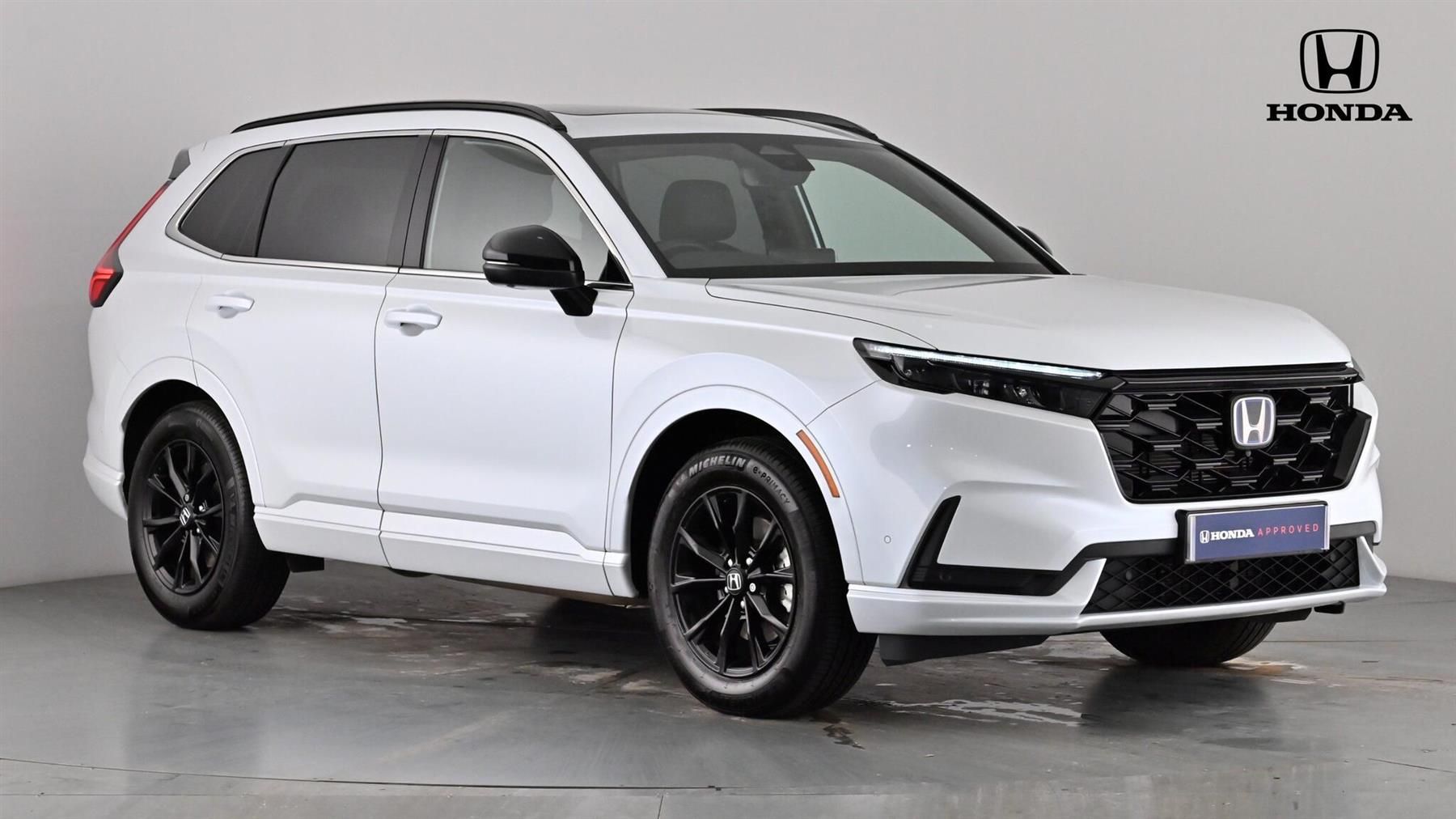 Privacy glass, Head up Display, Adaptive performance damper, LED Headlights, Honda parking pilot, Wireless apple carplay, Handfree power tailgate with kick sensor and walk away close, Honda CONNECT navigation with My Honda+ 9" touchscreen, AM/FM/DAB, Apple Carplay and Android Auto, live traffic info, Exterior Features, Auto wipers, Front and rear electric windows, Privacy glass, Rain sensor, Rear wiper, Adaptive performance damper, Vehicle stability assist, Black paint + exculsive grille, Black Shark-fin antenna, Body colour bumpers, Body colour door handles, Body colour plus black colour roof spoiler, Exhaust pipe finisher, High gloss black window garnish, Panoramic opening glass sunroof, Rear side wing doors, Roof rails, Active cornering lights, Adaptive driving beam, Auto headlight adjuster, Auto headlights, Front LED Indicator lights, Front turn type led with sequential, Headlight auto on/off timer, LED 3rd brake light, LED daytime running lights, LED front fog lights, LED Headlights, LED rear lights, Welcome home function, Safety, ABS/EBD, Brake assist function, Collision mitigation braking system, Electronic parking brake with auto hold, Front and rear collision mitigation throttle control, Hill descent control, Hill start assist, Low speed brake system, Paddle deceleration control, 4 x front 4 x rear 4 x side parking sensors, Active lane change assist, Adaptive cruise control with Cornering speed assist, Adjustable speed limiter, Agile handling assist, Crossing traffic warning front, Drive Mode (EV,Econ,Sport,Normal,Snow,Tow), Driver attention monitoring system, Electric power steering, Emergency stop signalling system, Forward collision warning, HEV mode, Honda 360 sensing, Honda parking pilot, Intelligent speed limiter, Lane change collision mitigation, Lane departure warning system, Lane keep assist system, Lane watch, Lead car departure notification system, Low speed following, Road departure mitigation, Traffic sign recognition, Auto dimming rear view mirror, Black door mirror caps, Electrically adjustable and heated door mirrors, Electrically folding door mirrors, Exterior mirror tilt for reverse, Multi view camera system in door mirrors, 5 x 3 point seatbelts, Anti-whiplash front headrests, Deflation detection system, Driver airbag, Driver SRS airbag (single stage inflation), Front and rear curtain airbags, Front and rear seat belts with emergency locking retractor (ELR), Front centre airbag, Front passenger airbag, Front side airbags, Knee airbags (DR) and (AS), Manual child lock in rear doors, Passenger SRS airbag with cut off switch, Rear side airbags, Audio / Communications, Bluetooth hands free telephone connection, E-call, eCall emergency call system, Wireless apple carplay, Wireless charging, 12 speakers, 1X USB (A/2.5A) and 1x Charger (C/3A) on Front, Bose premium sound system, Centre speakers, DAB+ radio, Dashboard centre speaker, Front tweeters, Rear USB 2x Charger (C/3A), Steering wheel mounted controls, Subwoofer, Driver Convenience, Handfree power tailgate with kick sensor and walk away close, Power meter, Miscellaneous, 10.2" Multi information display, BLIS (Blind Spot Information System) with Cross Traffic Monitor, Head up Display, Honda CONNECT navigation with My Honda+ 9" touchscreen, AM/FM/DAB, Apple Carplay and Android Auto, live traffic info, Traffic jam assist, Interior Features, Air conditioning - Rear vent, Dual zone automatic climate control, Accessory sockets in Front & Trunk, Cargo net hooks, Dark roof lining, Driver and front passenger seat armrests, Film layered honeycomb metal interior panels, Front centre armrest, Genuine leather steering wheel, Heated steering wheel, Hybrid emblem, Instrument panel with garnish wood film, Leather upholstery, Luggage floor box, Meter illumination, Platinum chrome interior door handles, Rear centre armrest, Sport pedals, Sunglasses holder with mirror, Synthetic headrest, Tilt/telescopic adjustable steering wheel, Tonneau cover, Ambient light in roof, Courtesy lights, Footwell ambient interior light front and rear, Front and rear ambient light (door handle&door line) and front cup holder, Front map lights, Rear reading lights, Trunk light, Driver/passenger sunvisors and vanity mirrors, Driver/passenger sunvisors with illuminated vanity mirrors, Packs, Exclusive styling with sport paint pack - CR-V, Trim, 3 seat bench in 2nd row, 4 way driver lumbar support, 4 way electrically adjustable passenger seat without height adjust, 60/40 split folding rear seat, 8 way electrically adjustable drivers seat + mirror memory, Driver/passenger front seatback pockets, Front ventilated seats, Heated front seats, Heated rear seats, I-Size ISO Fix Points, Rear headrests, Reclining rear seats, Single front passenger seat, Security, Honda super locks, Immobiliser, Mirrors and windows key fob operation, Remote central locking with 2 key fobs, Security alarm, Selectable door unlock, Smart entry + Smart start, Tilt sensors, Ultrasonic security sensor, Towing, Trailer stability assist, Wheels, Flat tyre solution temper tyre/repair kit