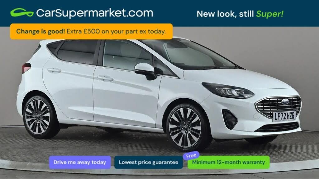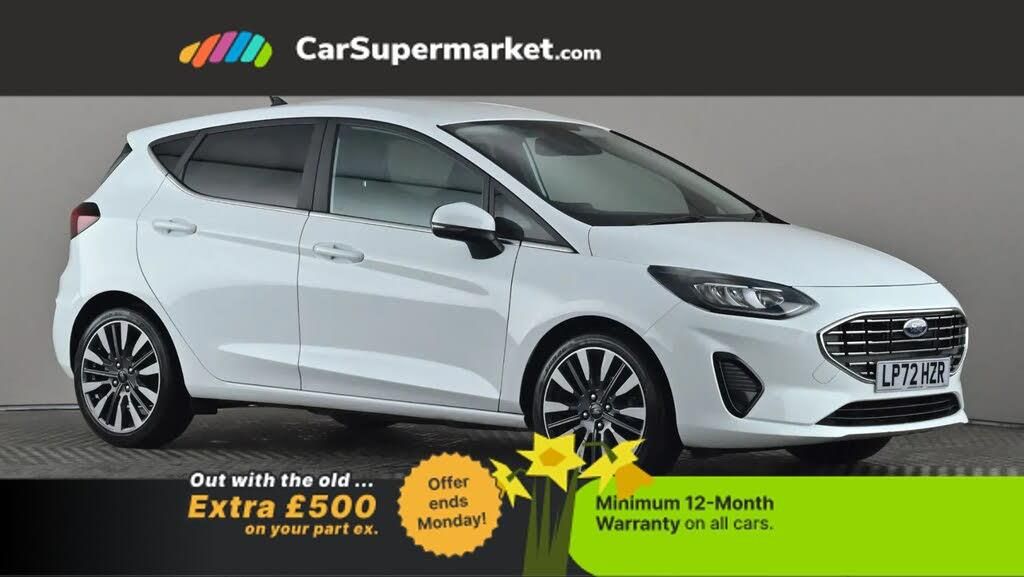 Bluetooth, Parking Sensors, Traffic Sign Recognition, Sat Nav, Digital Radio, Quickclear Heated Windscreen, Privacy Glass, Keyless Entry;Ford Fiesta 1.0 EcoBoost Hybrid mHEV 125 Titanium X Auto (White) Compact hybrid hatchback with tech and comfort features. Includes Bluetooth, parking sensors, traffic sign recognition, sat nav, digital radio, Quickclear heated windscreen, privacy glass, and keyless entry. Optional paint and interior package (£850.00). Minimum 12-month warranty. Last serviced 14/12/2024 with services due every 24 months. MOT due 21/01/2027.