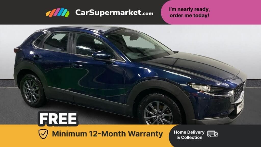 Adaptive Cruise Control, Cruise Control, Android Auto, Apple CarPlay, Blind Spot Monitoring, Parking Sensors, Bluetooth, Sat Nav, Lane Departure Warning, Traffic Sign Recognition, Heated Front Seats, Keyless Entry;This blue Mazda CX-30 SE-L Lux offers stylish crossover practicality combined with mild hybrid efficiency from the 2.0 e-Skyactiv petrol engine. The vehicle features adaptive cruise control and cruise control for relaxed driving along with blind spot monitoring and parking sensors for added safety. Apple CarPlay and Android Auto provide smartphone connectivity while satellite navigation and Bluetooth enhance convenience. Lane departure warning and traffic sign recognition support driver awareness while heated front seats and keyless entry add further comfort.