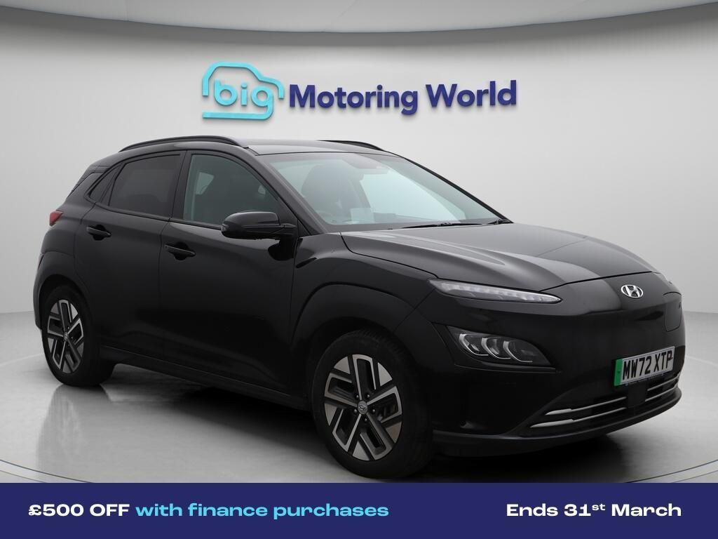 £500 towards your finance depo-Our Hyundai KONA comes with optional extras worth £565. Specification includes a range of fantastic features including £500 towards your finance deposit, Head up Display, 17'' Alloy Wheels, Leather Seats, Apple CarPlay, Adaptive Cruise Control, Lane Assist, Android Auto, Satellite Navigation, Privacy Glass Specification information is supplied by CAPHPI and may vary to the actual car. This data does not form any part of a buying contact. Please check specification prior to purchase in-store. The MOT is valid until October 2026, visit bigmotoringworld.co.uk for more photos, a 360 tour, service history and a free HPI report.Were BIG on peace of mind and this Black Hyundai KONA has completed our comprehensive 200 point inspection and passed all checks. Its ready for you to drive away with immediate collection in-store. We include a 90-day warranty as standard plus an option to extend for up to 3 years.Reserve this car exclusively for you, safely and securely at bigmotoringworld.co.uk, with a fully refundable £99 deposit. Test drive before you buy, with no commitment, no hassle and a completely haggle free experience. Still searching and want to see thousands more cars? We are BIG on choice with over 8000 cars to choose from.Visit our award winning web site bigmotoringworld.co.uk.Were Big Motoring World and were BIG on what matters to you.