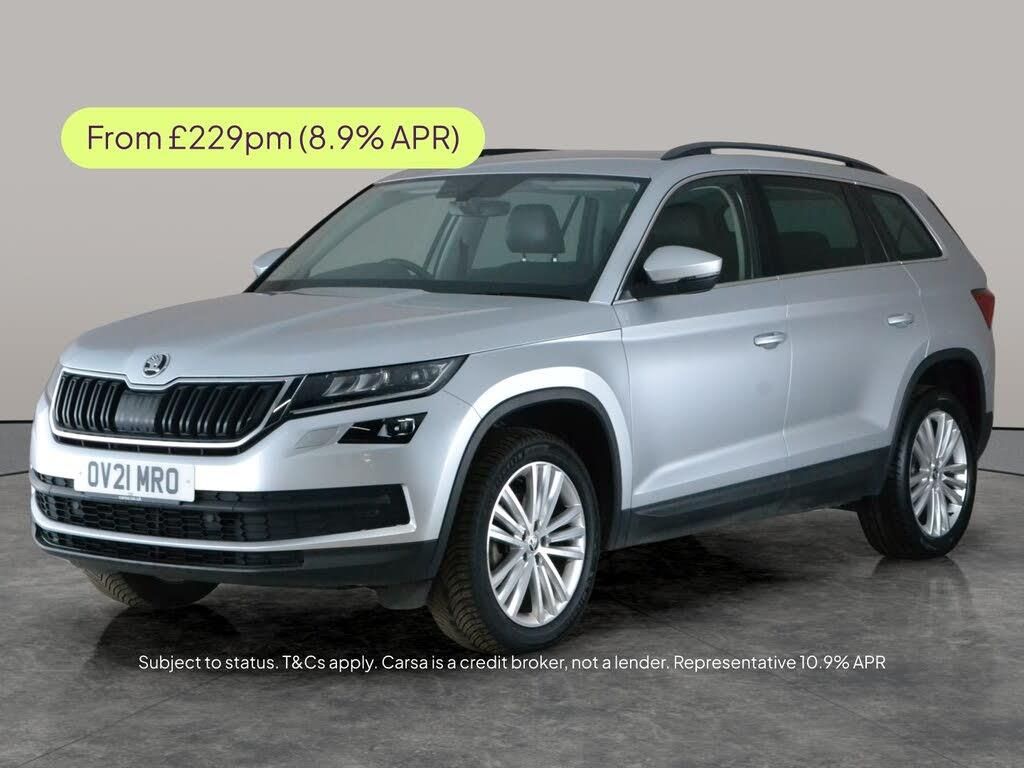 Discover the Skoda Kodiaqa spacious silver SUV with luxurious Alcantara seats and room for seven. Enjoy the comfort of heated seats and seamless connectivity with Apple CarPlay and SmartLink. LED headlights provide brilliant visibility, while keyless entry, front and rear parking sensors, and driving modes make every journey a breeze. Cruise control and dual zone digital climate control ensure a relaxed drive, and built-in sat nav keeps you on track. Stay connected with Bluetooth audio streaming wherever you go. 4 services recorded, last serviced on 09/03/2026 at 61,114 miles. MOT to 07/05/2026. Visit our website for service history, online valuation, full vehicle specification plus multiple images. Any feature/option specified here is from 3rd party data. We cannot guarantee the accuracy of any specification supplied by a 3rd party. We recommend that you physically check the specification of the vehicle on site prior to purchase. This information does not form part of the buying contract. Terms & Conditions apply. We have over 2,000 cars available from our 10 national branches, check our website to see all our stock. Our Trustpilot rating is 4.4/5 with over 9,000 reviews.