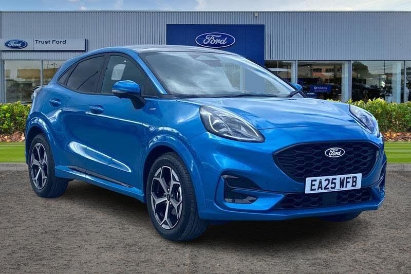 Drivers Assistance Pack, BLIS Blind Spot Information System, Adaptive Cruise Control, Panoramic Glass Roof , Power Tailgate, 360 Camera, Heated Seats, Heated Steering Wheel, Charging Mat, Climate Control, Cruise Control + Speed Limiter, Lane keeping aid, Quickclear heated windscreen, Driver alert system, Emergency call service, Ford easy fuel, Full digital 12.8 instrument cluster, Power assist steering, Selectable drive modes(Normal, Eco, Sport, Slippery and Trail), Speed sign recognition, Automatic headlights with rain sensing wipers and auto high beam, Front fog lamps, LED daytime running lights, LED rear lamps, LED third brake light, Power foldable heated door mirrors with puddle lamps and puma logo protection, Rear side wing doors, Rear wiper, ST-Line body styling kit with unique grille, 3 seat bench in 2nd row, Centre console with armrest and stowage, Ford megabox extended bootspace, Front and rear head restraints, Front floor mats, Manual 4 way driver seat adjust with lumbar adjustment, Single front passenger seat, ST- Line cloth trim with red stitching, 3 rear seatbelts, Child safety lock, Electronic stability control (ESC) and hill start assist, Pre-collision assist with autonomous emergency braking, pedestrian/cyclist detection & post-collision braking, Tyre pressure monitoring system (TPMS)