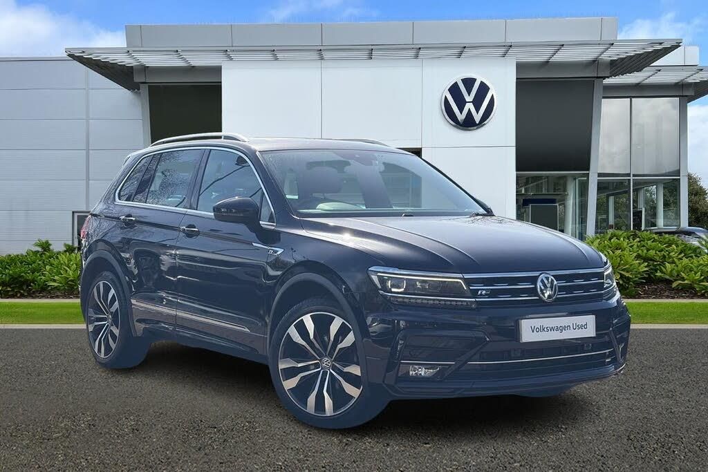 Fully electric tailgate + keyless entry and start, Pearl - Deep black, Front and rear electric windows, Heated rear window, Rain sensor windscreen wipers, Rear windscreen washer and wiper with interval delay, Tinted windows (B pillar backwards), Sports suspension, Black roof rails, Body colour door handles, Body colour rear spoiler, Body coloured bumpers, Chrome side window surrounds, Chrome trimmed radiator grille, Dual chrome exhaust, Electric panoramic sunroof with sunblind, Piano black rear diffuser, R Line body kit, Silver under body guard, Twin trapezoid chrome exhaust pipes, Automatic activation of hazard warning lights, Coming/leaving home lighting function, Dusk sensor + auto driving lights, LED headlights with dynamic light assist daytime running lights and cornering front fog lights, LED rear lights, ABS+EBD+Brake assist, Electronic parking brake with auto hold, ESP with EDL + ASR, Front assist including city emergency braking, Hill hold control, Adaptive cruise control, Lane assist, Speed limiter, Auto dimming interior mirror, Body colour door mirrors, Electric folding door mirrors, Electric heated + adjustable door mirrors, 3 rear 3 point seatbelts, Active bonnet, Active pedestrian safety system, Curtain airbags, Driver/Front Passenger airbags, Driver/Passenger whiplash optimised head restraints, Drivers knee airbag, First aid kit, Front side airbags, Head airbag system, Height adjustable front 3 point seatbelts + pretensioners, Passenger airbag deactivate switch, Passenger knee airbag, Pre crash system, Rear side airbags, Seatbelt warning lamp and buzzer, Two tone horn, Warning triangle, Front + rear carpet mats, 3 zone climate control, 12V Accessory socket in centre console, 4 load lashing points, Bag hook in luggage compartment, Black headlining, Front centre armrest with 12v socket, Front centre armrest with storage + rear 2 air vents + cupholders, Front seatback folding tables, Height/reach adjust steering wheel, Illuminated scuff plates, Leather gear knob, Lockable cooled glovebox, Luggage compartment side storage, Map pockets on front seats, Rear cupholders, Removable luggage cover, Stainless steel pedals, Storage compartment in driver's door, Storage compartment in passenger's door, Storage tray on dashboard, Sunglasses storage, Variable boot floor, Interior light with delay, Luggage compartment lighting, XDS electronic differential lock, Illuminated driver/passenger vanity mirrors, App-Connect, Bluetooth phone integration system, Aux-in socket, DAB Digital radio, SD card slot, USB connection, Active information display, Instrument cluster, Low washer fluid warning light, Outside temperature display, Service interval indicator, Warning lights, Diesel particulate filter, Chrome door trim inserts, Piano black interior trim, 3 rear headrests, 40:20:40 split folding rear seats, Driver + front passenger lumbar support, Foldable passenger seatback, Isofix Preparation 2 Rear child seats, Passenger seat height adjuster, Sliding/reclining rear seats, Ambient lighting pack - Tiguan, Alarm with interior protection, Electronic engine immobiliser, Remote central locking with 2 remote folding keys, 20'' Suzuka alloy wheels + anti theft wheel bolts, Steel space saver spare wheel
