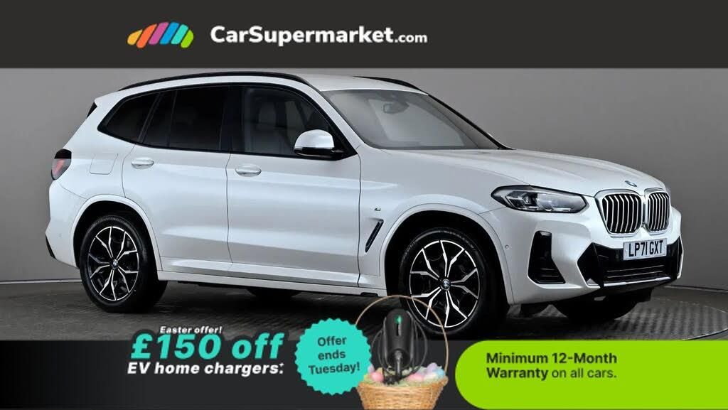 Sat Nav, BMW Live Cockpit, Cruise Control, Heated Front Seats, Bluetooth;BMW X3 xDrive20d MHT M Sport Step Auto (White) A premium SUV offering strong mild-hybrid diesel performance and M Sport styling. Features BMW Live Cockpit, sat nav, heated front seats, cruise control and Bluetooth. Optional Technology Package, Vernasca leather interior, Mineral White paint and sun protection glass (£2,065.00). Minimum 12-month warranty. Last serviced 24/01/2026. MOT due 30/01/2027.
