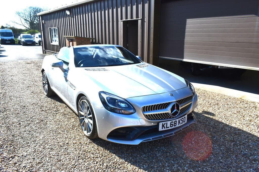 Finished in Iridium Silver with black leather interior, service history, 18'' alloy wheels, 6 spee dmanual, air con, vario roof, cruise control, heated front seats, air scarf, eco start/stop function, traction control, electric roof, Bluetooth, sat nav, DAB radio, Apple Car Play/Android Auto, airscarf, panoamic vario-roof, 18'' AMG multi spoke design alloy wheels, HPI clear, finance availabe with this vehicle...... for further information on this vehicle please contact us on 01483 236417. Discover this exceptional 2019 Mercedes Benz SLC200 AMG Line, boasting remarkably low mileage for its year at just 17,133 miles. This Euro 6 compliant 2.0L petrol model comes with a full service history, offering peace of mind and assurance of its well maintained condition. The AMG Line trim enhances its sporty appeal, complemented by stylish 18in AMG 5 spoke design alloy wheels.Experience year round comfort with the innovative AIRSCARF neck level heating system and heated front seats, ensuring a pleasant drive even on cooler days. Practicality is also a strong point, with generous boot space designed to accommodate your needs. Further enhancing your driving experience are the cruise control with SPEEDTRONIC variable speed limiter and air conditioning, making this SLC200 AMG Line a refined and capable choice.