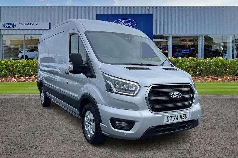QUICKCLEAR HEATED WINDSCREEN uses ultra thin filaments that superheat to de-ice and de-mist your windscreen as well as help de-freeze the wipers and works in seconds, HILL START ASSIST temporarily stops you rolling backwards or forwards when making a hill start - maintaining pressure to the braking system for an extra 25 seconds giving you more time and control as you move your foot from the brake to the accelerator, 12 Touchscreen with SYNC4 navigation, Automatic air conditioner with 12 inch multi function display, Bi-Xenon headlights with LED daytime running lights, High intensity discharge headlamp with static cornering lights, Auto start/stop system, PAS, Single rear wheels, Quickclear heated windscreen, Driver one touch up/down power windows, Rear mudflaps, Radio with remote stalks, Leather steering wheel, Lockable glove box lid, Warning lights, Reach and rake adjustable steering column, Electric windshield defroster, Intelligent Speed Assist, Curvature Control, High mounted stop lamp, Rear splash guards, Roof mounted radio antenna, Front passenger airbag deactivation, 2 litre twin facia mounted bottle holder, Audio controls mounted on steering wheel, Overhead console, Driver large head/short arm mirror, Non limited slip differential front axle, Emergency brake warning, Partial molded headliner, Visible Vehicle Identification Number (VIN), Automatic windshield wiper, 2 x 12V power outlets, Integrated indicators on door mirrors, Load compartment tie down loops, Configurable Unlocking, Driver and passenger seatbelt reminder, Cold start (-20), Header mounted courtesy lights - 2 map lights, Two step door unlock system, Delete wheel covers, Static bending headlights, Auto high headlamp, Door entry remote control unit 2 Fobs key, Water in fuel filter with sensor, Gearshift indicator light, Easy fuel capless refuelling system, Electronic dynamic cornering control, Tyre pressure sensors, Side wind mitigation, DAB Radio, Emergency assistance, Electric parking brake, Rear fog lights, Vehicle maintenance monitor, Selectable drive mode, Wrong way alert, ABS + ESP + Hill start assist, Rear axle Alt A - Narrow track, Leather gear shift knob, Digital rear view mirror, Partial rubber inside floor cover, Speed dependent power lock group, Locking wheel lug nut, Driver sunglasses roof storage, Storage box under dual passenger seat, Rain sensing windscreen wipers, Self coloured door handles, Plastic rear bumper, Driver front seatbelt buckle pretensioner, 4 radio speakers, Shielded power door deadlocks, 8 Part digital instrument cluster, Wireless beltminders, Model badge, Body coloured upper front bumper, Body coloured lower front bumper, Self coloured rear bumper with integral step, Self coloured front grille with chrome surround, Wide bodyside self coloured mouldings, Self coloured cargo door handle, 4 spoke premium feel Sensico wrapped steering wheel, Front independent MacPherson struts, linear rate coil springs, stabiliser bar, gas pressurised shock absorbers and rear leaf springs, 16 5 spoke alloy wheels x 6.5, P235/65 R16C BSW tyre size, Driver assistance pack 6 - Transit, LONG WHEEL BASE, MEDIUM ROOF , LIMITED, ULEZ COMPLIANT, ULEZ, EURO 6, AIR CON, AIR CONDITIONING, AIRCON