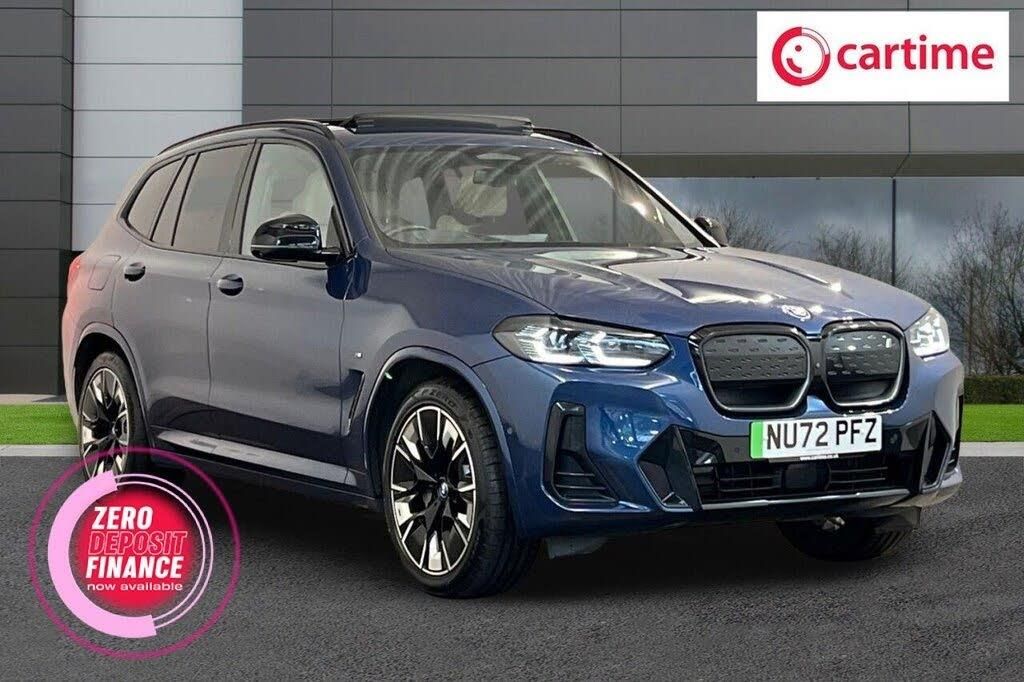 20in Alloy Wheels - M Aerodynamic - Bi-Colour, ABS - Anti Lock Braking System, Acoustic Glazing, Active Guard Plus, Active Protection, Adaptive LED Headlights, Adaptive Suspension, Air Breather with BMW M logo, Air Conditioning - Automatic, Airbags - Driver and Front Passenger, Airbags - Front Side for Driver and Passenger, Airbags - Head - Front and Rear, Alarm System, Ambient Lighting, Armrests, Attentiveness Assistant, Automatic Operation of Tailgate, Automatic Start-Stop Button, Backrest Width Adjustment for Driver, Blue Ring Around BMW Logos, BMW Connected Package Professional, BMW ConnectedDrive Online Services, BMW Gesture Control, BMW Iconic Sounds - Electric, BMW iDrive, BMW Individual Lights - Shadowline, BMW Legal Emergency Call, BMW Live Cockpit Professional, BMW TeleServices, Brake Pad Wear Indicator, Bumper System Front and Rear - Replaceable Deformation Elements for Impacts Up to 15kmh, CBC - Cornering Brake Control, Centre Lock Switch, Charging Cable - Mode 3 - 5m, Closing System with Central Locking, Comfort Access, Condition Based Service, Crash Sensor, Cup Holders - Front x2, DAB Digital Radio, Door Sill Strips, Drive Recorder, Driving Assistant Professional, Driving Experience Switch, DSC - Dynamic Stability Control Plus, DTC - Dynamic Traction Control, Dynamic Brake Lights, eDrive Exterior Sound, Electric Memory Seats, Electric Windows - Front, Electro Mechanical Parking Brake, Electronic Vehicle Immobiliser, Enhanced Bluetooth with Wireless Charging, Extended Storage, Exterior Mirrors - Electrically Folding with Anti Dazzle, Exterior Trim - Extended High Gloss Shadowline, Exterior Trim - High-Gloss Shadowline, Floor Mats - Velour, Follow Me Home Headlight Function, Front and Rear Parking Sensors, Front Bumper - M Sport with iX3 Specific Design with Blue Contents, Galvanic Embellisher for Controls, Glove Compartment - Lockable, Head-Up Display, Headlights - Beam Throw Control, Headlining - M Anthracite, Heated Seats for Driver and Front Passenger, Heated Steering Wheel, High-Beam Assistant, Instrument Panel in Sensatec, Interior Rear-View Mirror with Automatic Anti-Dazzle Function, Interior Trim - Aluminium Rhombicle with Pearl Chrome, Lashing Eyes in Luggage Compartment, Loudspeaker System - Harman Kardon, Luggage Compartment Lights, Luggage Net, Lumbar Support - Drivers, M Aerodynamic Exterior, M Badging on Front Side - Left and Right, M Seat Belts, M Sport Leather Steering Wheel, Multiple-Control-Arm Rear Axle, Non Smoker Package, Panoramic Glass Sunroof, Parking Assistant, Parking Assistant Plus, Phytonic Blue, Power Sockets, Power Steering - Electric, Preparation for Adaptive M Suspension, Rain Sensor with Automatic Headlight Activation, Rear Centre Armrest including Two Cupholders, Rear Diffuser in Blue, Reversing Assist Camera, Reversing Light, Roof Rails - Shadow Line High Gloss - Black, Runflat Indicator, Safety Battery - Terminal Clamp, Seat Backrest Adjustment for Rear Seats, Seats - Front Sports, Servotronic Steering, Side Impact Protection, Split Folding Rear Seat, Steering Column Adjustment, Storage Options, Sun Protection Glass, Sun Visors with Vanity Mirrors and Ticket Holder, Third Brake Light Using LED Technology, TPMS - Tyre Pressure Monitoring System, Tyre Repair Kit, Vernasca Leather - Oyster with Grey Contrast Stitching, Warning Triangle, Washer Jets - Heated, Welcome Lighting, Widescreen Display, WiFi Hotspot