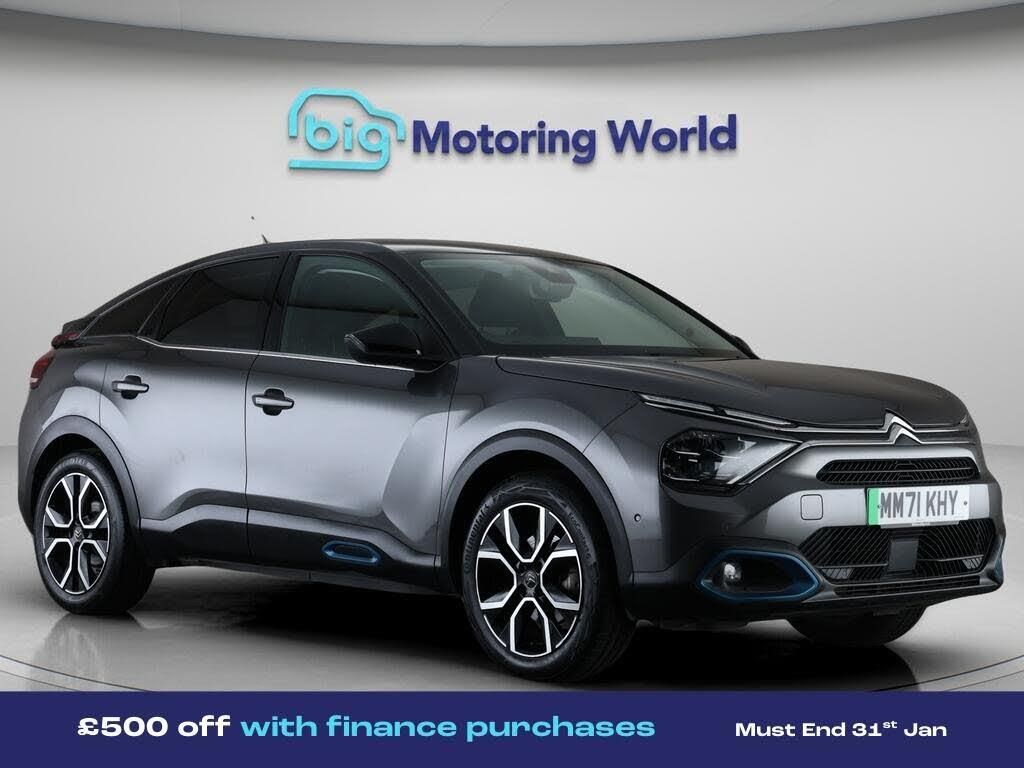 £500 towards your finance depo-Our Citroen e-C4 is finished in Grey. Specification includes a range of fantastic features including £500 towards your finance deposit, Head up Display, 18'' alloy wheels, Part Leather Seats, Apple CarPlay, Android Auto, Privacy Glass, Rear View Camera, Heated Steering Wheel, Bluetooth Specification information is supplied by CAPHPI and may vary to the actual car. This data does not form any part of a buying contact. Please check specification prior to purchase in-store. The MOT is valid until February 2027, visit bigmotoringworld.co.uk for more photos, a 360 tour, service history and a free HPI report.Were BIG on peace of mind and this Grey Citroen e-C4 has completed our comprehensive 200 point inspection and passed all checks. Its ready for you to drive away with immediate collection in-store. We include a 90-day warranty as standard plus an option to extend for up to 3 years.Reserve this car exclusively for you, safely and securely at bigmotoringworld.co.uk, with a fully refundable £99 deposit. Test drive before you buy, with no commitment, no hassle and a completely haggle free experience. Still searching and want to see thousands more cars? We are BIG on choice with over 8000 cars to choose from.Visit our award winning web site bigmotoringworld.co.uk.Were Big Motoring World and were BIG on what matters to you.