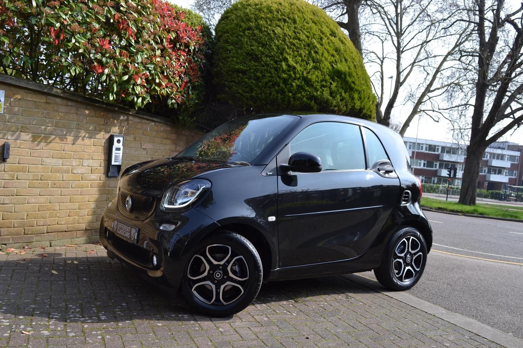 We are a Smart specialist, for full up to date Smart stock, please visit our website dcc.co.uk. DCC are pleased to offer this Smart ForTwo 0.9T Prime (Premium Plus), finished in black with full black leather upholstery, black tridion safety cell, black grill & 15 inch black/polished alloy wheels. Factory equipment includes: premium sound system with tweeters, ambient interior lighting, reverse camera, automatic headlights & wipers, fog lights, front centre armrest, LED taillights, sat nav, glass panoramic sunroof, rear parking sensors, electric windows & mirrors, air con, bluetooth, cruise control, heated rear window, heated seats, 3 spoke multifunction leather steering wheel and height adjustable drivers seat. A perfect example offered by DCC: rare sought after 0.9T engine 90bhp, full Smart main dealer service history (7 services in total), last serviced 14/10/2025 at 29,493 miles. The MOT expires 30/10/2026 and it comes with two keys. Examples like this are becoming nigh on impossible to obtain with such low mileage, full main dealer history, in a good colour and this being the top spec model. You can message us via WhatsApp using +44(0)20 8989 0001. Part exchange is welcome. Competitive finance packages available, please ask for a quote or more info. Our numerous 5-star customer reviews are available to view on AutoTrader & Google. DCC is a professional, friendly family run business, with an excellent reputation, that we have built up during our 40 years in the industry. During your time spent with us at DCC you can always expect a relaxed, non-pressurized atmosphere where you can view vehicles at your leisure whilst enjoying our huge collection of motoring memorabilia in our quirky underground boutique showroom. We operate a 'viewing by appointment only' policy, please email or phone to arrange a suitable time & date. Our showroom is within easy reach of greater London and Essex; we are located just 15 minutes from the M25, and 5 minutes from the M11 motorways. We are also ideally located 1-minute walk from South Woodford tube station, on the central line
