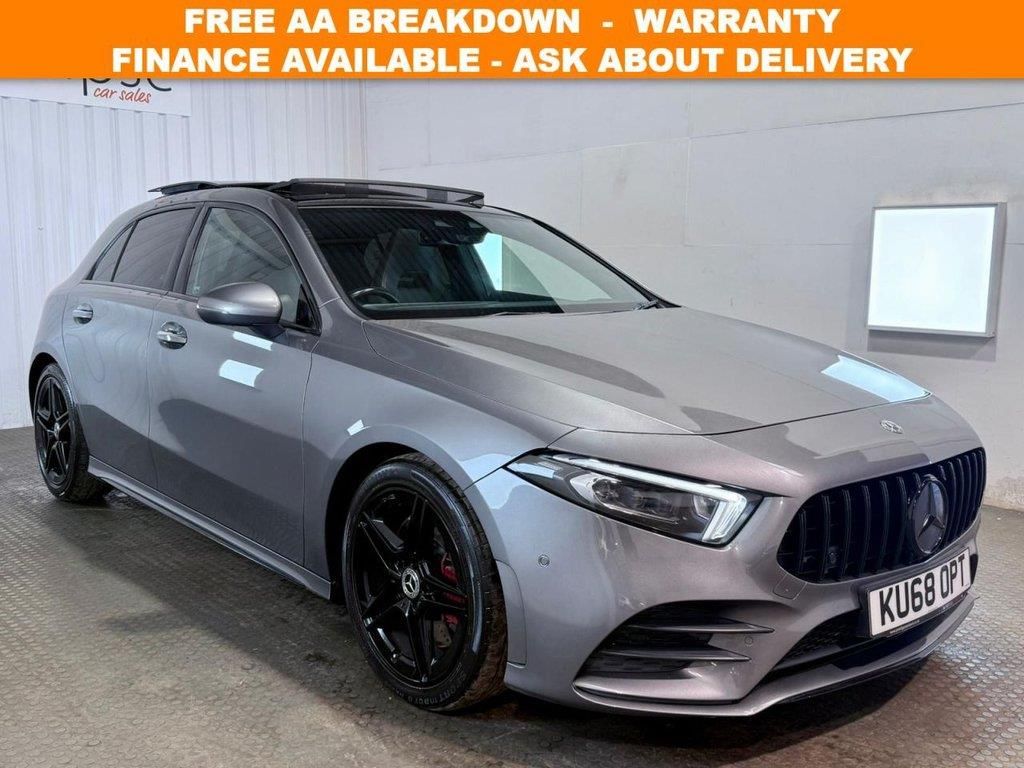 Mercedes-Benz A-Class 2.0 A250 AMG Line Hatchback first registered in October 2018. Finished in Mountain Grey with a Black Imitation Leather Interior and 18 Inch Alloy Wheels. Spec Includes Sliding Panoramic Sunroof | Ambient Lighting | Cruise Control with Speed Limiter | Satellite Navigation | Reversing Camera with Front and Rear Parking Sensors | DAB Radio | Apple Car Play | Android Auto | Bluetooth Connectivity | Electric Heated Front Memory Seats | Active Lane Keeping Assist | Electric Folding Wingmirrors | Automatic High Beam Control Plus | Dual Zone Climate Control | Road sign Recognition System | Selectable Drive Modes | Multifunction Steering Wheel. Serviced at 11942 Miles | 32311 Miles | 57122 Miles. New MOT upon sale. Eclipse Car Sales are Proud to be an approved AA dealership. Every car includes 12 Months AA Breakdown Cover, 3 Months National Warranty Included, Upgrade packages available, Part exchange welcome, Debit cards accepted, a range of affordable finance packages available to fit all circumstances, Open 7 days a week, 9am - 5.30pm Monday to Saturday & 10am - 3pm Sundays & Bank Holidays, Contact us on 0238 2028811 or email sales@eclipsecarsales.co.uk . 18in Alloy Wheels - AMG 5-Twin-Spoke Design - Painted in Titanium Grey with a High Sheen Finish,ABS - Anti-Lock Braking System with BAS - Brake Assist,Active Bonnet - Pedestrian Safety Measure which Detects an Impact and Raises Bonnet by 65mm,Active Brake ASSIST,Active Lane Keeping Assist,Adaptive Brake Assist with Hold Function and Hill Start Assist,Adaptive Brake Lights,Air Conditioning - THERMOTRONIC Luxury Automatic Climate Control - Two-Zone with Display,Air Vents with Surround and Cruciform Nozzle in Silver Chrome,Airbag - Kneebag for Driver,Airbags - Dual Stage - Driver and Front Passenger,Airbags - Head and Sidebags - Driver and Front Passenger,Airbags - Windowbags for Driver and Front Passenger,Airpanel - Active Radiator Shutters Open for Cooling Air and Close when not Needed to Improve Aerodynamics and Fuel Efficiency,Alarm System with Immobiliser and Interior Protection - Thatcham Category 1,AMG Bodystyling - Front and Rear Apron and Side Skirts,ATTENTION Assist,Automatic Child Seat Recognition Sen