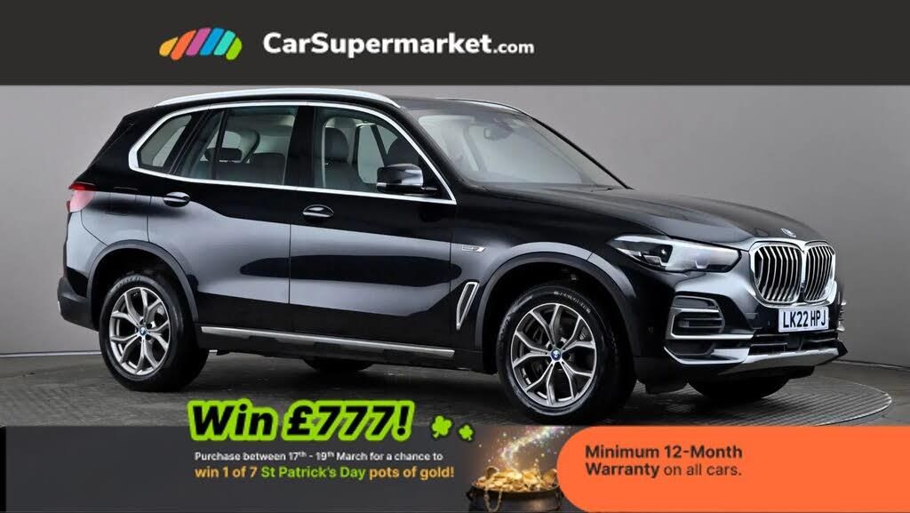 Bluetooth, Wireless Phone Charging, Digital Radio, Leather Upholstery, Parking Sensors, Reverse Camera, Digital Cockpit, Satellite Navigation;BMW X5 xDrive45e xLine (Black) A luxury plug-in hybrid SUV offering performance and refinement. Includes digital cockpit, sat nav, leather upholstery, wireless charging, reverse camera and parking sensors. Optional Black Sapphire paint and Vernasca leather (£795.00). Minimum 12-month warranty. Last serviced 17/03/2026. MOT due 24/03/2027.