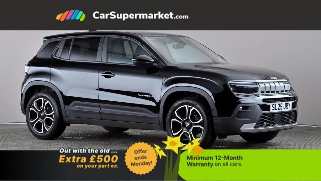 Parking Sensors, Adaptive Cruise Control, Cruise Control, Apple CarPlay, Android Auto, Traffic Sign Recognition, Blind Spot Monitoring, Wireless Phone Charging;Jeep Avenger 1.2 Summit (Black) A compact SUV with bold styling and modern driver assistance technology. Features adaptive cruise control, Apple CarPlay/Android Auto, blind spot monitoring, a rear view camera, parking sensors, wireless phone charging and traffic sign recognition. Optional Volcano paint (£700.00). Supplied with a minimum 12-month warranty. Last serviced 13/03/2026. MOT due 30/03/2028.