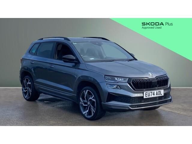 Bold, sporty and packed with premium technology, this Skoda Karoq Estate 1.5 TSI Sportline DSG is a fantastic example of one of Skodas most desirable SUVs. Registered on a 74 plate and finished in stylish Grey, this eye catching Karoq has covered just 7,506 miles and offers the appeal of a nearly new vehicle with exceptional value. Under the bonnet sits the lively and efficient 1.5 TSI petrol engine, delivering strong performance, smooth acceleration and impressive fuel efficiency. Paired with the highly regarded DSG automatic gearbox, the Karoq provides a refined and effortless driving experience whether you are navigating city streets, tackling the daily commute or cruising on the motorway. The Sportline model adds a dynamic edge to the already impressive Karoq with distinctive styling, sporty interior detailing and a high level of specification. Inside you will find a modern and well appointed cabin featuring satellite navigation, a large touchscreen infotainment system, Virtual Cockpit digital display, smartphone connectivity with Apple CarPlay and Android Auto, adaptive cruise control, LED headlights and parking sensors. The elevated driving position, spacious interior and flexible boot space make this SUV ideal for family life and everyday practicality. When you buy from Vertu Skoda Darlington you can do so with complete confidence. Our dedicated team provide outstanding customer service and every vehicle is prepared by manufacturer trained technicians to ensure it meets the highest standards. This vehicle is supplied through the Skoda Approved Used programme which includes a comprehensive multi point inspection, a minimum 12 month Skoda warranty, 12 months roadside assistance and full vehicle history and mileage checks, giving you total peace of mind. With low mileage, sporty Sportline styling and a superb level of equipment, this Skoda Karoq DSG represents an excellent opportunity to own a highly desirable SUV. Demand for low mileage automatic Karoq models remains extremely strong, so contact Vertu Skoda Darlington today to arrange your viewing or te