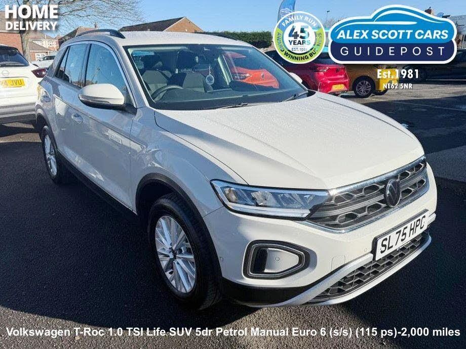 This 2025 Volkswagen T-Roc TSI Life presents an exceptional ownership proposition with an incredibly low mileage of just 2000 miles. As a single owner vehicle, this Euro 6 compliant T-Roc boasts a 1.0 litre petrol engine and comes with an MOT valid until September 2028, offering peace of mind for years to come. Inside, you'll find the VW Sound system for your audio enjoyment, alongside a mobile phone interface complete with wireless inductive charging. The Driver Assistance Package includes adaptive cruise control, while the Park Assist system, featuring front and rear parking sensors, makes manoeuvring effortless. Automatic headlight control with LED daytime running lights and a coming home leaving home feature further enhance the driving experience.The highlights of this T-Roc TSI Life demonstrate its superior offering compared to other vehicles in its class. With an impressive fuel economy of 49 mpg, it provides excellent value for money on your journeys. Furthermore, its low CO2 emissions contribute to a more environmentally conscious drive. These factors, combined with its minimal mileage and single owner history, make this Volkswagen T-Roc a truly stand out choice.-Full VW warranty Til 09/2028-ALEX SCOTT CARS GUIDEPOST Award Winning Family Run Business Since 1981 TEL 01670 823777