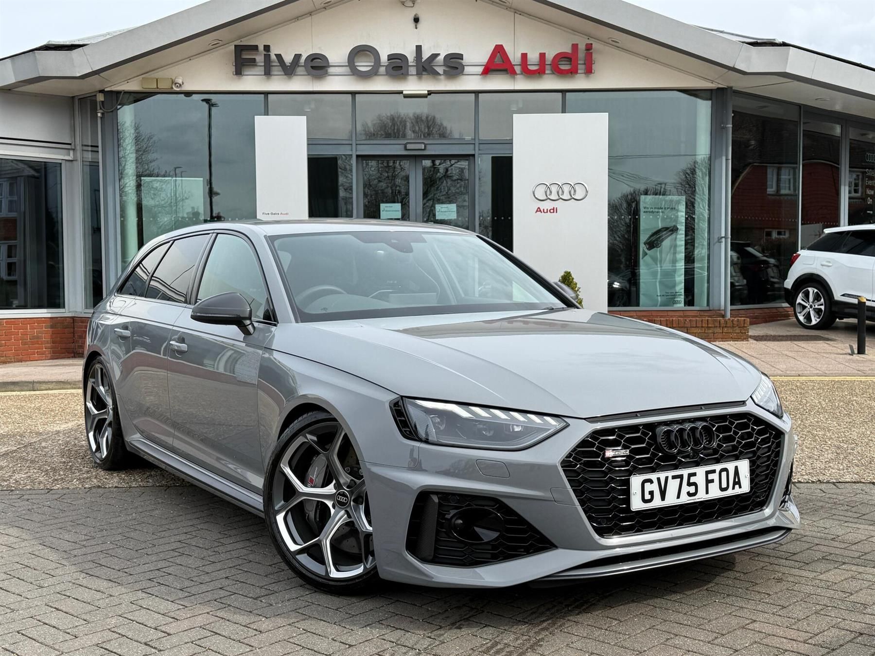25 YEARS EXCLUSIVE STYLING & BADGING, RS SPORTS EXHAUST SYSTEM, CARBON CERAMIC BRAKES, ADDITIONAL SET OF ALLOYS FITTED WITH EXCLUSIVE TROFEO RS SEMI-SLICK TYRES, BLACK LEATHER/ALCANTRA CARBON SHELL BUCKET SEATS WITH YELLOW HONEYCOMB STITCHING, RS COILOVER SUSPENSION, AUDI VIRTUAL COCKPIT PLUS WITH WHITE BACK DIGITAL DIALS, 360 DEGREE CAMERA, ADAPTIVE CRUISE CONTROL (ON DEMAND) WITH SPEED LIMITER, MATRIX LED HEADLIGHTS, ADVANCED KEY, SATELLITE NAVIGATION, MMI TOUCHSCREEN, BLUETOOTH CONNECTIVITY, DAB RADIO, AUDI SMARTPHONE INTERFACE WITH APPLE CARPLAY AND ANDROID AUTO, VOICE CONTROL, BANG & OLUFSEN PREMIUM 3D SOUND SYSTEM, WIRELESS PHONE CHARGING, THREE ZONE CLIMATE CONTROL, HEATED FRONT SEATS, 40/20/40 SPLIT FOLDING REAR SEATS WITH ELECTRIC STOWAGE COVER, FLAT BOTTOM STEERING WHEEL, EXTENDED LED INTERIOR LIGHTING, CARBON INLAYS, AUDI DRIVE SELECT WITH RS MODES, POWER TAILGATE, 20-INCH ALLOY WHEELS, PRIVACY GLASS, FRONT AND REAR PARKING SENSORS, ACTIVE LANE ASSIST, AUDI SIDE ASSIST, TRAFFIC SIGN RECOGNITION, AUDI PRE SENSE, EMERGENCY SOS, QUATTRO, EURO 6, ULEZ.This car comes with the balance of the manufacturers warranty until 18/12/2028.Five Oaks Audi are delighted to offer this 2025 Audi Exclusive RS 4 Avant Edition 25 Years 470 PS tiptronic in Nardo Grey over Black Leather/Alcantara Carbon Shell Bucket Seats with Yellow Honeycomb Stitching and has completed just 6,221 miles. We are proud to be part of the Harwoods group, a family run business established in 1931. With four Approved Audi retailers within our group, we have access to over 400 vehicles. If this isn't the right car for you, please contact us and we will find it.If this isn't the right car for you our Group stock has specification to include Sunroof, Heated Steering Wheel, Reverse Camera, Rear Entertainment, Comfort & Sound Pack, Tech Pack, Panoramic Sun Roof, Black Pack, Massage Seats, AWD, Technology Pack, Head up Display, Vorsprung, Technik, Black Edition, S-Line, S Line, Edition 1, TFSI, Quattro, Sportback, LWB.-25 YEARS EXCLUSIVE, RS EXHAUST-PERSONALISED FINANCE PLANS AVAILABLE, PART EXCHANGE WELCOME & NATIONWIDE DELIVERY AVAILABLE