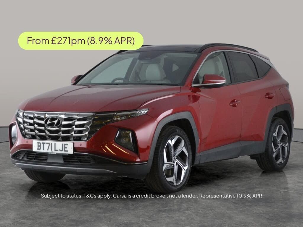 Experience luxury in this striking red Hyundai Tucson. Enjoy driving with Moss Grey leather seats, a panoramic roof, and a sunroof that fills the cabin with light. Stay comfortable year-round with heated and cooled seats plus a heated steering wheel. Packed with tech such as Adaptive Cruise Control, LED headlights, Sat Nav, Apple CarPlay, and a reversing camera. Safety is at the forefront with Active Lane Assist and Blind Spot Assist. Keyless entry and bold black roof rails add the finishing touch to this stylish, hybrid SUV. 5 services recorded, last serviced on 19/08/2025 at 50,152 miles. MOT to 16/02/2027. Visit our website for service history, online valuation, full vehicle specification plus multiple images. This vehicle is VAT qualifying. Any feature/option specified here is from 3rd party data. We cannot guarantee the accuracy of any specification supplied by a 3rd party. We recommend that you physically check the specification of the vehicle on site prior to purchase. This information does not form part of the buying contract. Terms & Conditions apply. We have over 2,000 cars available from our 10 national branches, check our website to see all our stock. Our Trustpilot rating is 4.4/5 with over 9,000 reviews.