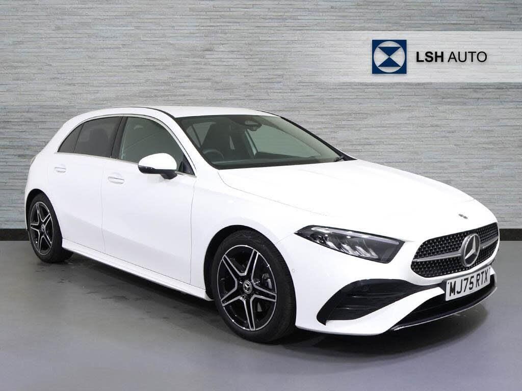 This Mercedes-Benz A Class A180h AMG Line (Executive) from 2025 boasts a full dealership service history and remains Mercedes-Benz manufacturer approved, offering peace of mind with 28 months of warranty remaining. This Euro 6 compliant, 1.3 litre petrol hybrid model, registered in 2025, has had only one owner and features the desirable AMG Line trim. Notable features include Blind Spot Assist for enhanced safety, convenient Wireless Charging, and cosy Heated Front Seats. Enjoy effortless access with Keyless Go and seamless connectivity through Dual Bluetooth Interfaces.The large boot space provides ample room for all your needs, making this A Class exceptionally practical. Experience brisk performance with an acceleration of 0-62mph in just 9.2 seconds, demonstrating its capability. The MOT is valid until September 2028, further underscoring its excellent condition. These combined attributes, from its comprehensive provenance to its thoughtful features and performance, position this Mercedes-Benz A Class as a superior choice compared to similar vehicles.-*EXECUTIVE, SAT NAV, AMG LINE*-Mercedes-Benz A Class A180 AMG Line Executive 5dr Auto-LSH Auto UK Ltd - An LSH Group Company. The Worlds Largest Retailer of Mercedes-Benz Passenger Cars