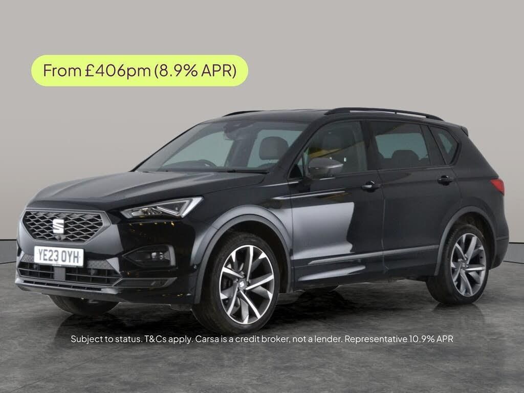 Experience the dynamic Seat Tarraco FR Sport SUV, featuring luxurious sports seats and sleek black styling. Enjoy the comfort of heated leather seats, driver memory functions, and keyless entry. Stay effortlessly connected with Apple CarPlay and a digital display, while the surround view cameras, reversing camera, and Park Assist make every manoeuvre simple. With 7 seats, advanced sat nav, LED headlights, driving modes, and cruise control, this automatic petrol SUV is ready for family adventures and city escapes alike. 2 services recorded, last serviced on 02/03/2026 at 26,252 miles. MOT to 04/03/2027. Visit our website for service history, online valuation, full vehicle specification plus multiple images. This vehicle is VAT qualifying. Any feature/option specified here is from 3rd party data. We cannot guarantee the accuracy of any specification supplied by a 3rd party. We recommend that you physically check the specification of the vehicle on site prior to purchase. This information does not form part of the buying contract. Terms & Conditions apply. We have over 2,000 cars available from our 10 national branches, check our website to see all our stock. Our Trustpilot rating is 4.4/5 with over 9,000 reviews.