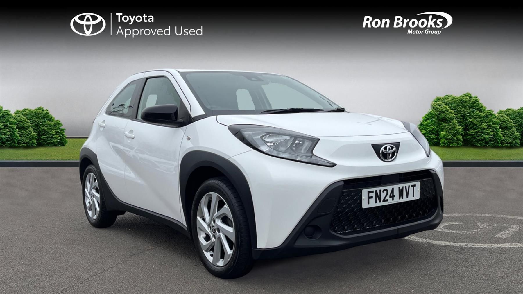 This 2024 Toyota Aygo X VVT-i Pure is a Toyota manufacturer approved vehicle with only one owner, offering peace of mind and a well cared for history. This stylish hatchback features a 1.0L Euro 6 petrol engine, ensuring efficient performance for your daily journeys. Inside, you'll find practical comforts including manual air conditioning, Bluetooth connectivity for seamless phone integration, and automatic headlights for added convenience. The intelligent adaptive cruise control, operated via the steering wheel, makes longer drives more relaxed, while the reversing camera aids with parking.The Aygo X VVT-i Pure stands out with its impressive fuel economy, achieving up to 57 miles per gallon, which indicates it is more economical than many other cars in its class. Furthermore, its low insurance group rating suggests that running costs will be kept to a minimum, making it an affordable choice. The low CO2 emissions also highlight its environmental consideration compared to similar vehicles. This combination of efficiency, affordability, and thoughtful features makes the Aygo X a compelling option.-One Owner-Ron Brooks Toyota Used Cars, 145 Point Check, Prepared to Toyota Standards & 1 Year Toyota Warranty