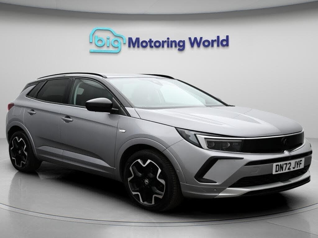 19'' Alloy wheels,Apple CarPlay-Our Vauxhall Grandland comes with optional extras worth £600. Specification includes a range of fantastic features including 19'' Alloy wheels, Apple CarPlay, Adaptive Cruise Control, Privacy Glass, Heated Windscreen, Wireless Phone Charging, Rear View Camera, Bluetooth, Blind Spot Assist, Parking Sensors Specification information is supplied by CAPHPI and may vary to the actual car. This data does not form any part of a buying contact. Please check specification prior to purchase in-store. The MOT is valid until March 2027, visit bigmotoringworld.co.uk for more photos, a 360 tour, service history and a free HPI report.Were BIG on peace of mind and this Grey Vauxhall Grandland has completed our comprehensive 200 point inspection and passed all checks. Its ready for you to drive away with immediate collection in-store. We include a 90-day warranty as standard plus an option to extend for up to 3 years.Reserve this car exclusively for you, safely and securely at bigmotoringworld.co.uk, with a fully refundable £99 deposit. Test drive before you buy, with no commitment, no hassle and a completely haggle free experience. Still searching and want to see thousands more cars? We are BIG on choice with over 8000 cars to choose from.Visit our award winning web site bigmotoringworld.co.uk.Were Big Motoring World and were BIG on what matters to you.