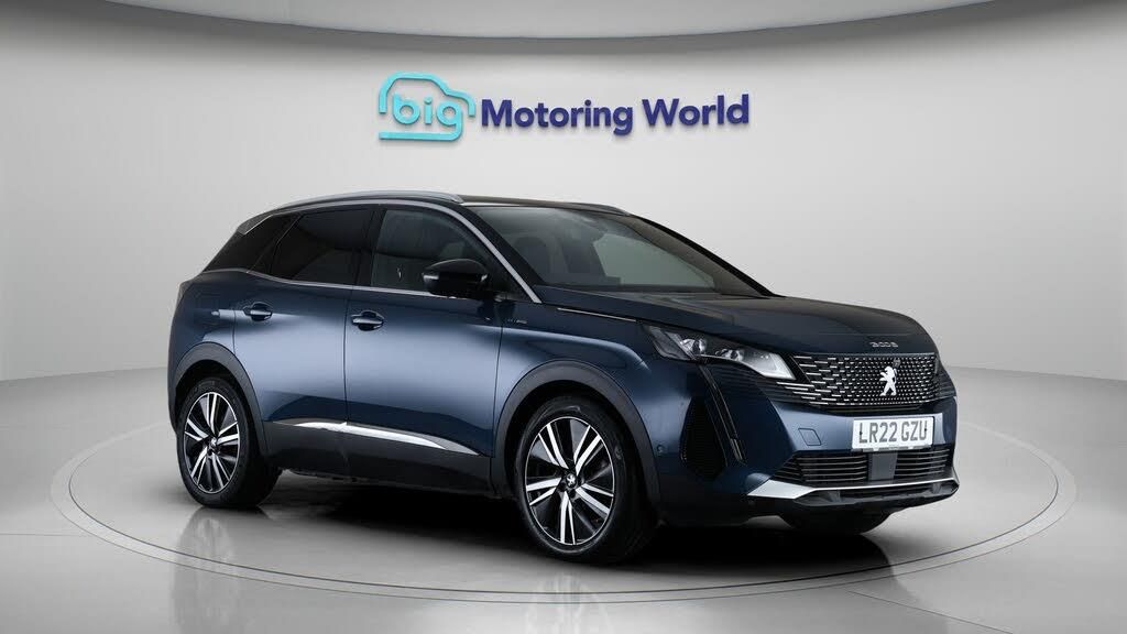 Our Peugeot 3008 comes with optional extras worth £1,735. Specification includes a range of fantastic features including Apple CarPlay, Massage Function Seats, Premium Sound System, Sports Pack, Visibility Pack, Privacy Glass, Bluetooth, Blind Spot Assist, Parking Sensors, Ambient Lighting Specification information is supplied by CAPHPI and may vary to the actual car. This data does not form any part of a buying contact. Please check specification prior to purchase in-store. The MOT is valid until March 2027, visit bigmotoringworld.co.uk for more photos, a 360 tour, service history and a free HPI report. Were BIG on peace of mind and this Blue Peugeot 3008 has completed our comprehensive 200 point inspection and passed all checks. Its ready for you to drive away with immediate collection in-store. We include a 90-day warranty as standard plus an option to extend for up to 3 years. Reserve this car exclusively for you, safely and securely at bigmotoringworld.co.uk, with a fully refundable £99 deposit. Test drive before you buy, with no commitment, no hassle and a completely haggle free experience. Still searching and want to see thousands more cars? We are BIG on choice with over 8000 cars to choose from. Visit our award winning web site bigmotoringworld.co.uk. Were Big Motoring World and were BIG on what matters to you.