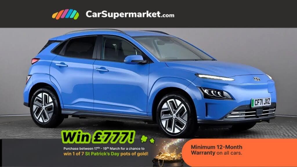 Sat Nav, Blind Spot Monitoring, Bluetooth, Cruise Control, Apple CarPlay, Android Auto, Privacy Glass, Automatic Climate Control, Heated Front Seats, Heated Steering Wheel, Keyless Entry;Hyundai Kona Electric 64kWh Premium (Blue) A fully electric SUV offering strong range and impressive technology. Features sat nav, Apple CarPlay/Android Auto, blind spot monitoring, heated front seats, heated steering wheel, cruise control, privacy glass and keyless entry. Optional Surfy Blue paint (£565.00). Minimum 12-month warranty. Last serviced 19/12/2025. MOT due 05/01/2027.
