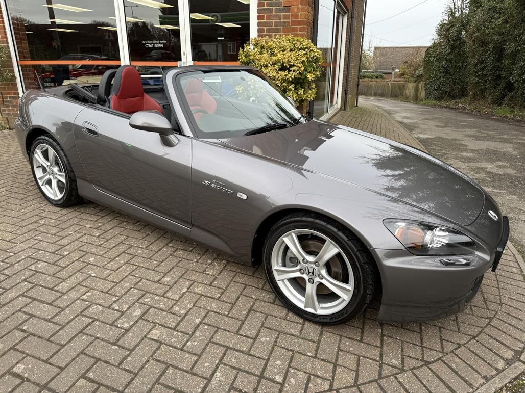 Moon Rock Metallic with Red leather, Facelift model (Retuned suspension, Revised subframe design, Carbon fibre gearbox synchronisers, New front & rear bumper design, Revised headlamps, LED tail lights, Oval tipped exhaust pipes, 17” alloys), 237 bhp 2.0 VTEC engine with 6-speed manual gearbox, Equipped with PAS, ABS, Traction control, E/windows, E/adjustable & heated mirrors, Air conditioning, Leather Sport seats, Leather Sports steering wheel, Chrome gear knob, Digital speedometer display, Brushed aluminium trim, Heated mirrors, Red engine start button, Radio with CD player, 12V power outlet, Power hood, Remote central locking, Alarm/immobiliser, Xenon headlights with headlight wash, 17” 5-spoke alloys, Originally supplied by Drake & Fletcher Honda of Maidstone, Kent, Complete with Original Honda owners book pack/manuals (Owners Manual, Service book x 2, Authorized Dealer List Booklet), Old MOT’s, Various service invoices and 2 sets of keys with Honda/Drake Fletcher key fob, Comprehensive service history – Just been serviced, A cherished 2 owner S2000 in one of the best colour combinations which has covered a just 19,000 miles from new.