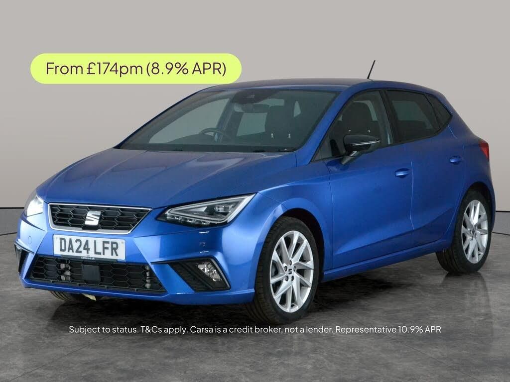 Experience the dynamic Seat Ibiza FR in striking blue, featuring 17in alloy wheels for a sporty look. Enjoy effortless journeys with adaptive cruise control, paddle shift, and keyless start. Stay connected with Apple CarPlay, Bluetooth audio streaming, and sat nav, all displayed on a digital instrument cluster. Day or night, drive with confidence thanks to bright LED headlights. Dual zone digital climate control and air conditioning ensure year-round comfort in this stylish automatic hatchback. 1 service recorded, last serviced on 15/10/2025 at 9,240 miles. MOT to 31/03/2027. Visit our website for service history, online valuation, full vehicle specification plus multiple images. This vehicle is VAT qualifying. Any feature/option specified here is from 3rd party data. We cannot guarantee the accuracy of any specification supplied by a 3rd party. We recommend that you physically check the specification of the vehicle on site prior to purchase. This information does not form part of the buying contract. Terms & Conditions apply. We have over 2,000 cars available from our 10 national branches, check our website to see all our stock. Our Trustpilot rating is 4.4/5 with over 9,000 reviews.