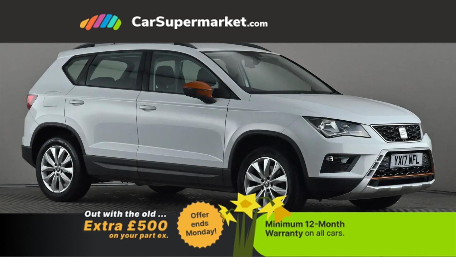 Android Auto, Apple CarPlay, Bluetooth, Cruise Control, Parking Sensors, LED Daytime Running Lights, 17" Alloy Wheels;SEAT Ateca 1.0 TSI Ecomotive SE (White) A practical and efficient SUV. Equipped with Android Auto, Apple CarPlay, Bluetooth, cruise control, parking sensors, LED daytime running lights and 17" alloy wheels. Last serviced 12/03/2026. MOT due 20/03/2027. Minimum 12-month warranty.