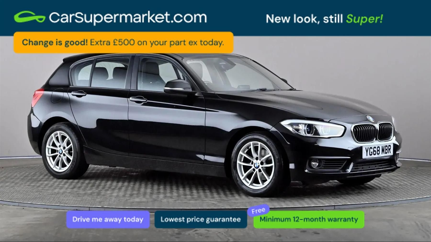 Cruise Control, Digital Radio;BMW 118i SE Business (Black) A premium hatchback delivering refined performance and practicality. Features cruise control and digital radio, along with 16-inch alloy wheels, Jet Black paint and Move cloth interior. Minimum 12-month warranty. Last serviced 14/03/2026. MOT due 04/02/2027.