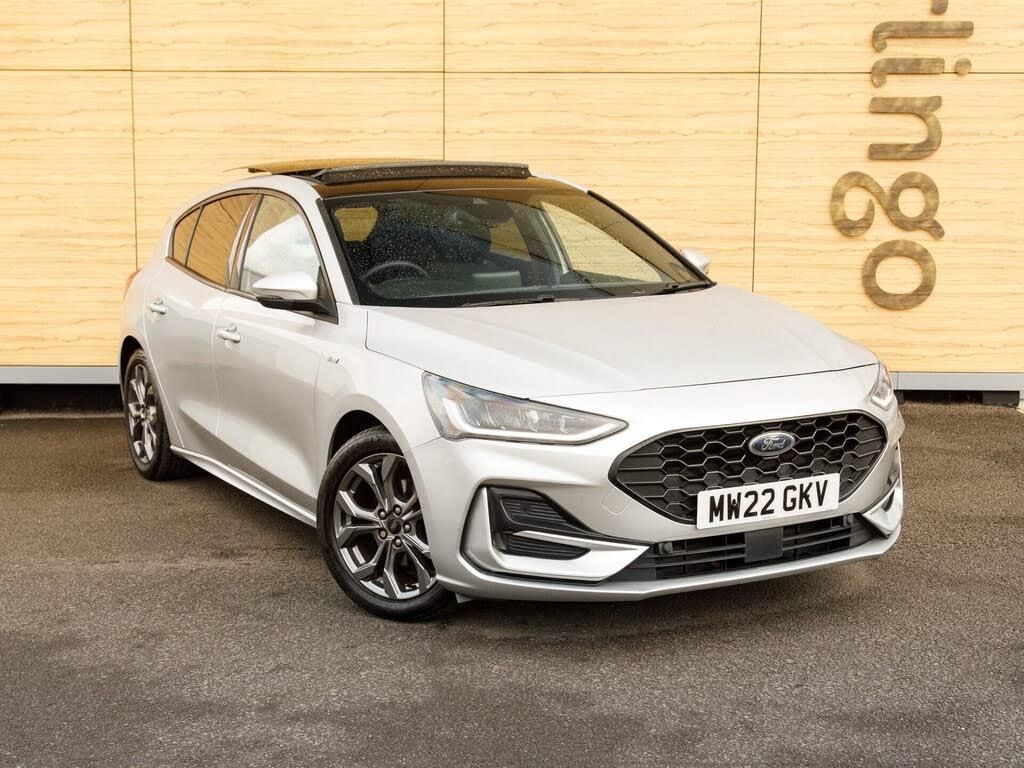 Cloth interior.This 2022 Ford Focus T ST-Line offers a superb blend of style and practicality, making it an excellent choice for any driver. This Euro 6 compliant model is powered by an efficient 1.0 litre petrol engine and boasts a generous boot space, perfect for all your needs. Inside, you'll find a host of desirable features designed for comfort and convenience, including an openable panoramic roof, dual zone electronic automatic temperature control, and the Ford Key Free System for effortless entry and start. The Driver Assistance Pack, complete with adaptive cruise control, adds an extra layer of ease to your journeys, while front and rear parking sensors ensure manoeuvring is a breeze. The addition of Sat Nav will keep you connected and on course for those long journeys. GREAT SERVICE HISTORY (May 2025: 31,283 miles, Nov 2024: 28,759 miles). HOME DELIVERY AVAILABLE ACROSS THE UK.