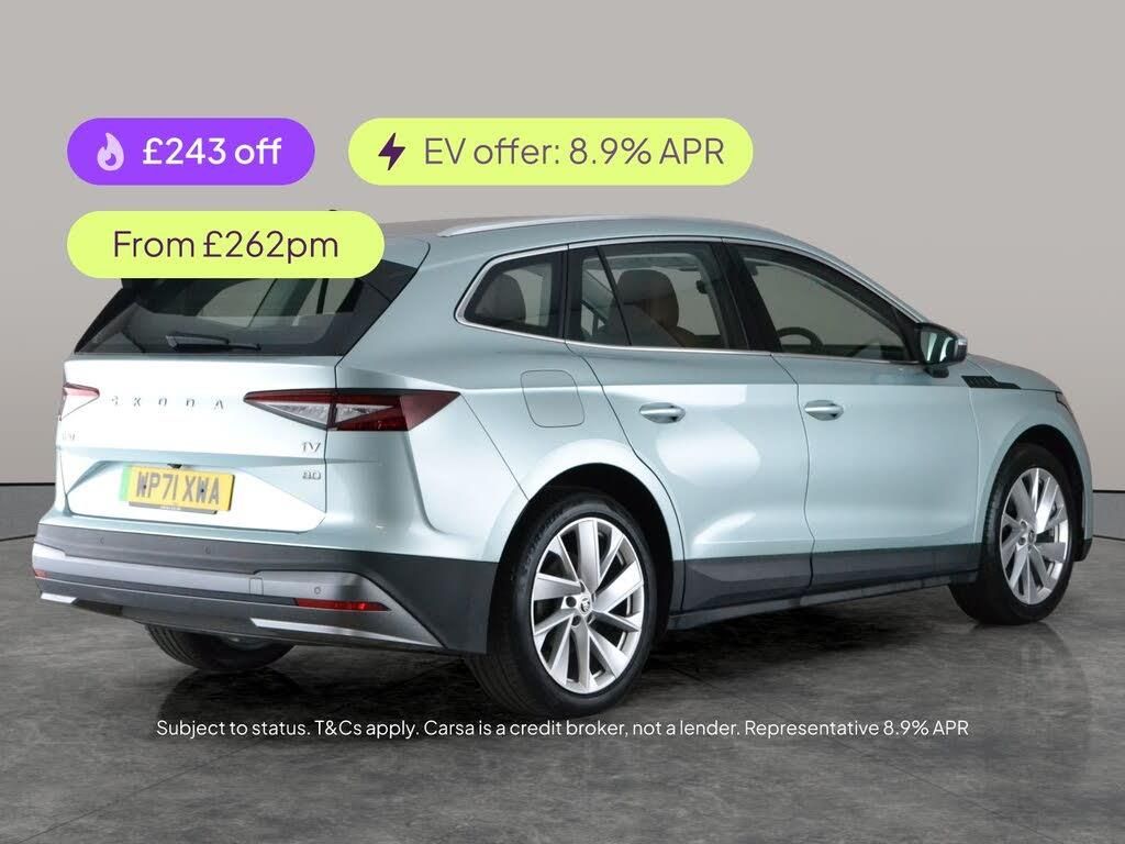 Experience the future of driving with this silver Skoda Enyaq SUV, packed with standout features to make every journey memorable. Enjoy a heated steering wheel for comfort, advanced Parking and Drive Packages for effortless manoeuvring, and stay connected with Apple CarPlay, SmartLink, Bluetooth, and built-in WiFi. Navigate easily with Sat Nav, and appreciate the sleek look and crystal-clear visibility from LED headlights. Keyless start, climate control, and cruise control ensure every trip is smooth and enjoyable. Discover electric driving at its best with this stylish Enyaq. 1 service recorded, last serviced on 23/01/2025 at 25,118 miles. MOT to 24/01/2027. Visit our website for service history, online valuation, full vehicle specification plus multiple images. This vehicle is VAT qualifying. Any feature/option specified here is from 3rd party data. We cannot guarantee the accuracy of any specification supplied by a 3rd party. We recommend that you physically check the specification of the vehicle on site prior to purchase. This information does not form part of the buying contract. Terms & Conditions apply. We have over 2,000 cars available from our 10 national branches, check our website to see all our stock. Our Trustpilot rating is 4.4/5 with over 9,000 reviews.