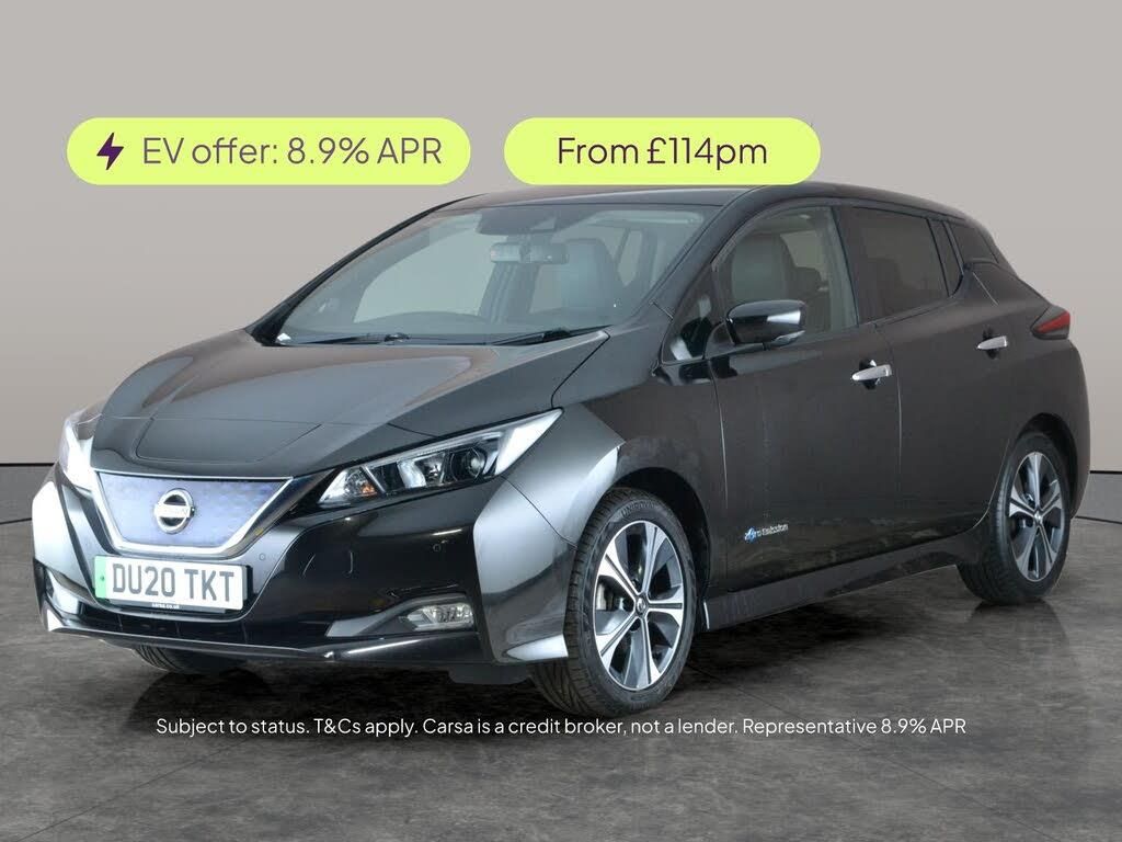 Experience the future of driving with this stylish black Nissan Leaf hatchback. Enjoy seamless connectivity with Apple CarPlay and the convenience of a reversing camera and built-in Sat Nav. Stay cosy with the Heat Pack, while advanced safety features like Intelligent Lane Intervention, Blind Spot Assist, and Lane Departure Warning System keep you secure. Relax in half leather seats, start with the touch of a button using keyless start, and cruise in style on striking 17in alloy wheels. This electric automatic is the perfect city companion. 3 services recorded, last serviced on 30/10/2025 at 24,639 miles. MOT to 19/11/2026. Visit our website for service history, online valuation, full vehicle specification plus multiple images. Any feature/option specified here is from 3rd party data. We cannot guarantee the accuracy of any specification supplied by a 3rd party. We recommend that you physically check the specification of the vehicle on site prior to purchase. This information does not form part of the buying contract. Terms & Conditions apply. We have over 2,000 cars available from our 10 national branches, check our website to see all our stock. Our Trustpilot rating is 4.4/5 with over 9,000 reviews.