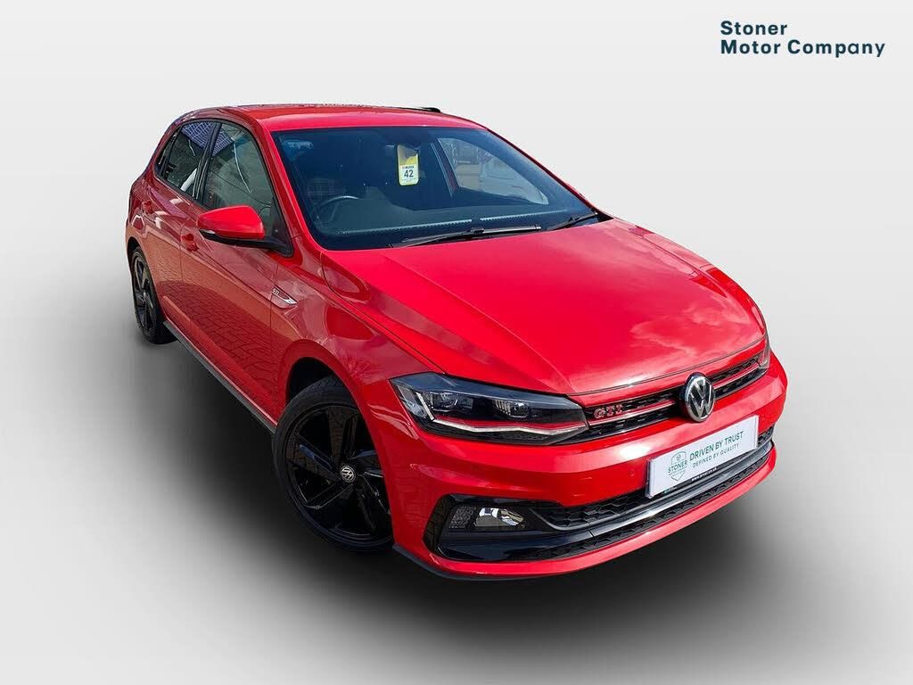ACC - Adaptive cruise control with front assist, forward collision warning, distance monitoring, city emergency brake and speed limiter, App-Connect, Bluetooth Telephone preparation, Driver alert system, Multifunction colour display, PAS - speed related, Service interval indicator, Start/stop system, Trip computer, Warning buzzer and light for front seatbelts unfastened, Battery regeneration during braking, Lowered sports suspension, XDS electronic differential lock, 6 speakers, Composition media system with radio, glovebox mounted CD, colour touch screen, SD card, aux-in, USB, multimedia interface, DAB Digital radio, Driver Personalisation profile selection, Automatic dimming interior rear view mirror with rain sensor, Black grille with chrome surround, Body colour bumpers, Body colour door handles, Body coloured side sills, Chrome insert to lower bumper, Chrome trimmed front air intake surrounds, Dusk sensor + automatic driving lights, Electric folding door mirrors, Electric front windows, Electric operated/heated door mirrors, Extended sill strips flared in black, Front fog lights including static cornering, Front wash/wipe with interval delay, Fully galvanised body, Gloss black rear spoiler (roof), Heated rear window with auto timer, High level 3rd brake light, Honeycomb radiator grille with red stripe, LED darkened rear light clusters, LED daytime running lights, LED headlamps with automatic range adjustment, LED rear number plate lights, Manual coming/automatic leaving home lighting function, Rear electric windows, Rear tinted glass from B-pillar backwards approx 65% tinted, Rear windscreen washer and wiper with interval delay, Stainless steel door sill protections with GTI logo, Twin chrome exhaust tailpipes, Unique GTI badging, 12V power socket in centre console, 2 bag hooks in luggage compartment, 2 cupholders, 3 rear head restraints, 60/40 split folding rear seat, AlumInium look pedals and driver's footrest, Ambient lighting, Black roof lining and sun visors, Chrome-plated electric window button surround, Driver/front passenger seat height adjustment + underseat drawers, Driver/passenger sunvisors with illuminated vanity mirrors, Dust/pollen filter, Front + rear carpet mats, Front centre armrest with storage compartment, Front seat backrest storage nets, Front seats with lumbar support, Front/rear reading lights, Gear change selection via paddle shift on steering wheel, Glovebox, Handbrake grip button in chrome effect, Height/reach adjustable steering column, Instrument lighting, white adjustable panel illumination, Interior light with delay, Isofix Preparation 2 Rear child seats, Jack and tool kit, LED footwell lights, Luggage compartment cover, removable, Luggage compartment lighting, Matt chrome gear lever gaiter surround, Storage compartment in front doors, Storage compartment in rear doors, Storage compartment under front seats, Three spoke leather trimmed multifunction steering wheel with red contrast stitching, Titanium black headlining, Variable boot floor, Variable Luggage compartment, GTI styling pack - Polo, Light and sight pack - Polo, 3 point height adj front seatbelts + pretensioners, 3x3 point rear seatbelts, ABS, Automatic post collision braking, Driver/front passenger airbag, Driver/Passenger whiplash optimised head restraints, ESP with EDL + ASR, Front and rear passengers curtain airbag system including front side airbags, Front passenger airbag deactivation, Front/rear disc brakes, Hill hold control, Hydraulic Brake Assist (HBA), Red brake calipers, Two tone horn, Tyre pressure monitoring system, Alarm with remote central locking and interior protection, Electronic engine immobiliser, Remote keyless entry using key fob including Start/Stop button on centre console, Air vents in Matt chrome, Chrome plated electric mirror adjustment light switch surround, Gloss black instrument surrounds, Space saver spare wheel