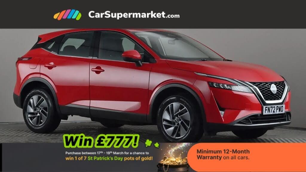 Apple CarPlay, Android Auto, Blind Spot Monitoring, Cruise Control, Lane Departure Warning, Parking Sensors, Traffic Sign Recognition, Bluetooth, Automatic Climate Control, 17" Alloy Wheels;Nissan Qashqai 1.3 DiG-T MH Acenta Premium Xtronic (Red) A practical and well-equipped SUV with smooth automatic drive. Includes Apple CarPlay/Android Auto, blind spot monitoring, cruise control, parking sensors and climate control. Minimum 12-month warranty. Last serviced 18/02/2026. MOT due 16/02/2027.