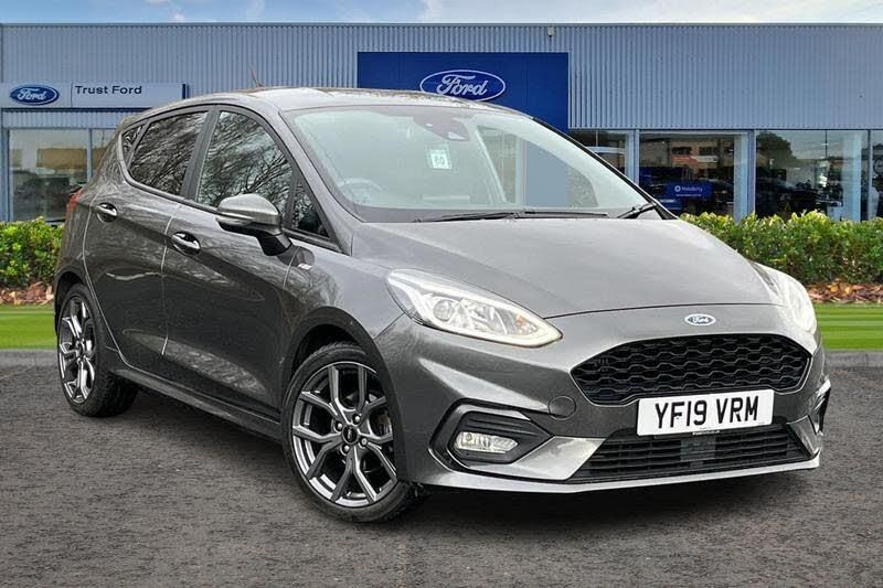Bluetooth system, Electric power steering, Ford easy fuel, Trip computer, Body colour bumpers, Body colour door handles, Body colour large rear spoiler, Chrome door handles, Chrome lower window surround, Cornering front fog lights, Electric front windows/one touch facility, Privacy glass, Quickclear heated windscreen, Rear wiper, Rugged body styling kit with active front wing badges, Tinted glass, Unique ST-Line upper grille & full bodystyling kit with ST-Line wing badges, 12V Accessory socket in centre console, 3 spoke flat bottomed leather steering wheel, 60/40 split folding rear seat, Adjustable head restraints, Black headlining, Boot carpet, Centre console with armrest and illuminated cupholders, Chrome inner door handles, Cloth upholstery, Footwell illumination, Front and rear velour floor mats, Front map reading lights, Front seat and rear pockets, Height adjustable driver's seat, Illuminated glovebox, Leather gear knob, Leather trimmed handbrake handle, Load area light, Manual air conditioning, Overhead console with sunglasses holder, Pollen filter, Rake/reach adjustable steering wheel, Rear centre head restraint, Sports front seats, Sports pedals, 3 point seatbelts on all rear seats, ABS+EBA, Curtain airbags, Driver and passenger airbags, Drivers knee airbag, Electronic stability control with hill start assist, Front passenger airbag deactivation, Front side airbags, Seatbelt warning, Tyre pressure monitoring system