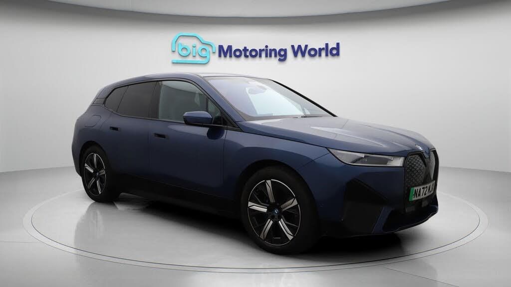 Our BMW iX comes with optional extras worth £795. Specification includes a range of fantastic features including £500 towards your finance deposit, All Wheel Drive, Head up Display, Leather Seats, Apple CarPlay, Electric Seats, Harman Kardon Speakers, Connected Package Professional, M Sport Bodykit, Android Auto Specification information is supplied by CAPHPI and may vary to the actual car. This data does not form any part of a buying contact. Please check specification prior to purchase in-store. The MOT is valid until November 2026, visit bigmotoringworld.co.uk for more photos, a 360 tour, service history and a free HPI report. Were BIG on peace of mind and this Blue BMW iX has completed our comprehensive 200 point inspection and passed all checks. Its ready for you to drive away with immediate collection in-store. We include a 90-day warranty as standard plus an option to extend for up to 3 years. Reserve this car exclusively for you, safely and securely at bigmotoringworld.co.uk, with a fully refundable £99 deposit. Test drive before you buy, with no commitment, no hassle and a completely haggle free experience. Still searching and want to see thousands more cars? We are BIG on choice with over 8000 cars to choose from. Visit our award winning web site bigmotoringworld.co.uk. Were Big Motoring World and were BIG on what matters to you.