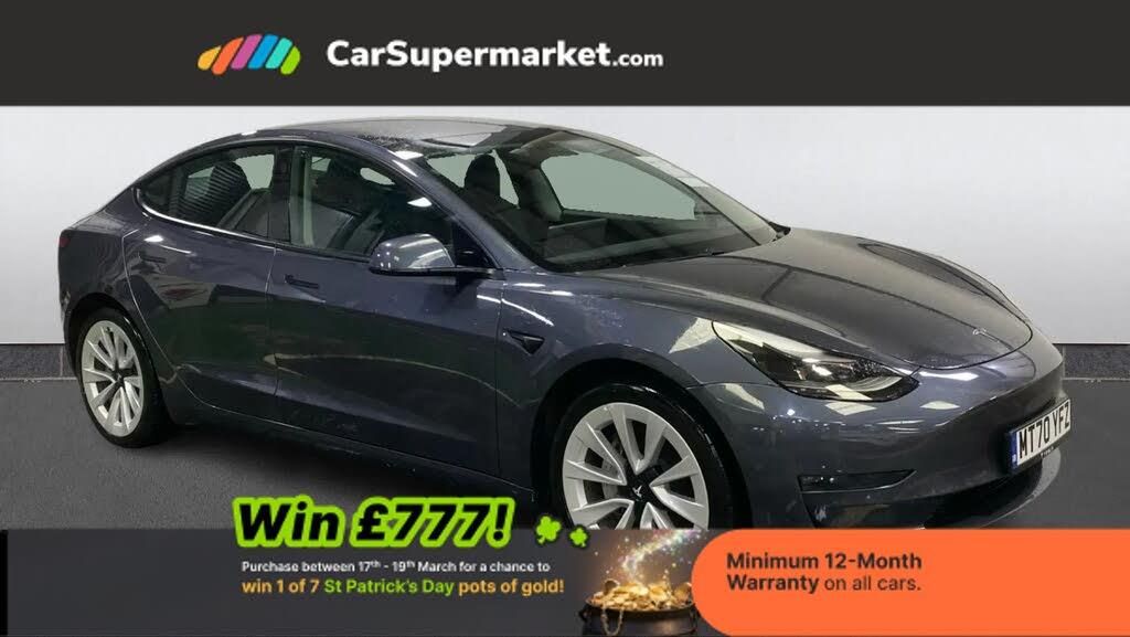 Adaptive Cruise Control, Cruise Control, Blind Spot Monitoring, Lane Departure Warning, Sat Nav, Traffic Sign Recognition, Digital Radio, Bluetooth, Keyless Entry;Tesla Model 3 Long Range AWD (Grey) An electric saloon offering long range and advanced technology. Features include adaptive cruise control, sat nav, traffic sign recognition and keyless entry. Optional extras 19" alloy wheels and paint (£2,600.00). Minimum 12-month warranty. MOT due 07/11/2026.