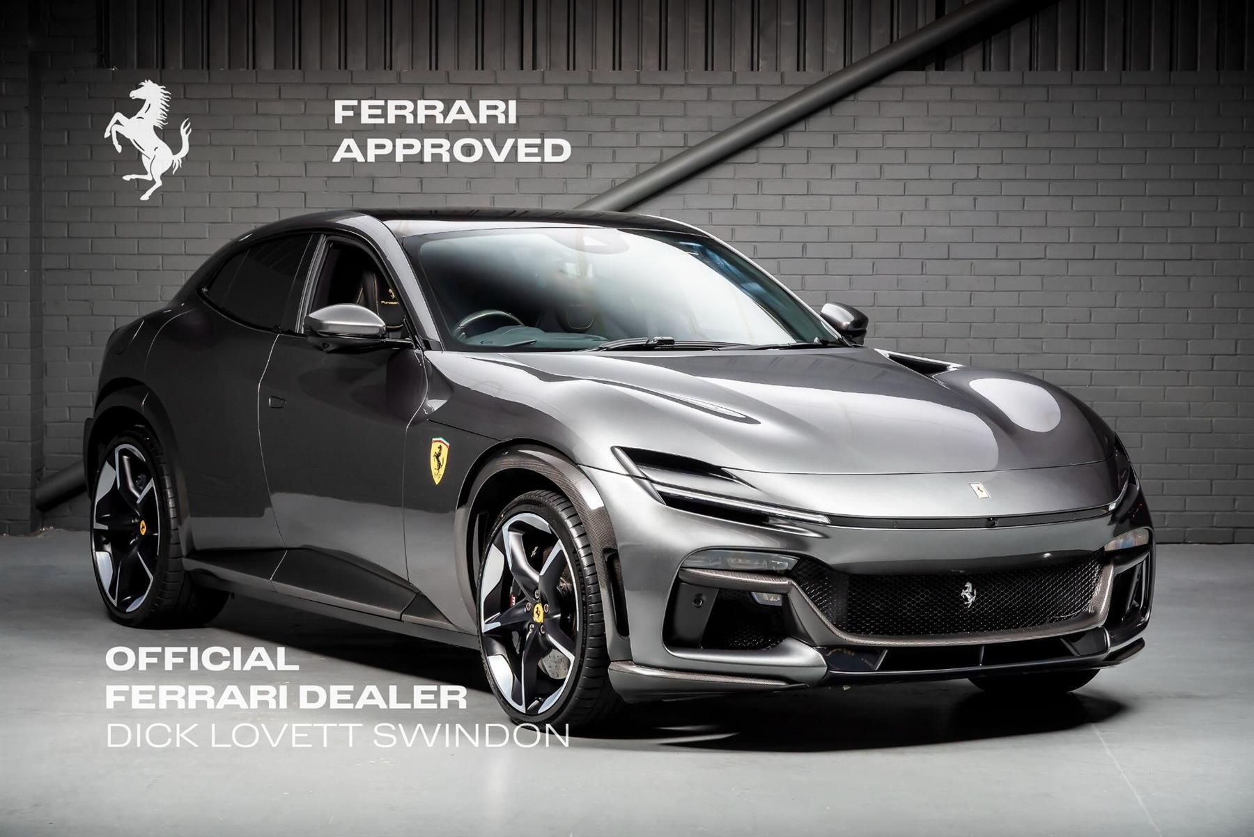 Experience Ferrari’s most advanced four door creation with this stunning Ferrari Purosangue, beautifully finished in the timeless and highly desirable Grigio Silverstone. Accented with airbrushed Scuderia Ferrari shields, this example blends functional performance with unmistakable Italian flair.Having covered just 9,283 miles, it boasts a full Ferrari service history and will greet its next owner as a fully prepared Ferrari Approved car, complete with 2 years Ferrari warranty for total peace of mind. Even better, this Purosangue benefits from free Ferrari servicing until October 2030, offering exceptional long term value and reassurance.Specification HighlightsThis example features an exceptional Carbon Fibre package, including:• Carbon Fibre wheel arches• Carbon Fibre side skirts• Carbon Fibre rear diffuser• Carbon Fibre front spoilerInside, the cabin continues the theme with:• Carbon Fibre heated steering wheel with LED shift lights and buttons.• Carbon Fibre central tunnel• Nero leather interior with ‘Nuovo Giallo’ contrast stitchingA striking, contemporary combination that elevates the Purosangue’s already special driving environment.A True Ferrari ExperienceThe Purosangue rewrites expectations of what a performance GT can be. Its naturally aspirated V12 delivers a uniquely emotive drive, while the groundbreaking chassis systems ensure agility and control in all conditions.We strongly encourage prospective owners to visit our showroom and experience this remarkable car in person. The craftsmanship, presence and character of the Purosangue can only be fully appreciated up close.Dick Lovett Ferrari is Europe’s leading Pre Owned Ferrari Dealership, proud to present some of the finest Approved Ferraris available anywhere in the world. Contact our specialist team today to arrange your viewing.