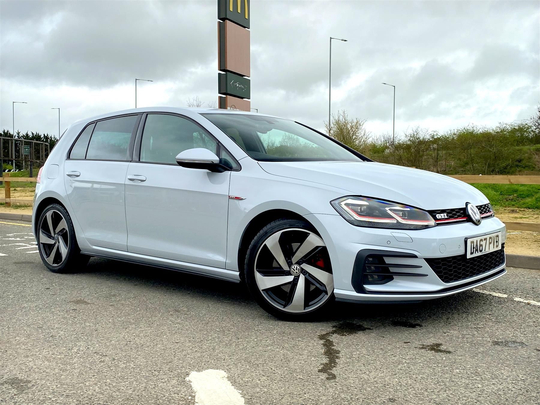 This is the later 2017 onwards Mk7.5 Golf GTI model with digital dash. 2.0 TSI engine providing 230ps through a six-speed semi-automatic DSG gearbox. Finished in the rare White Silver Metallic.