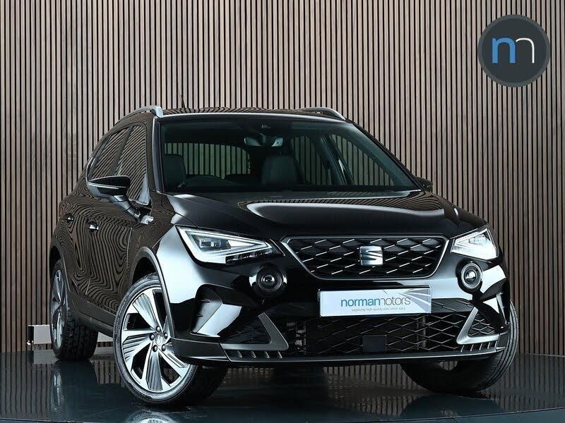 Introducing this fantastic SEAT Arona 1.5 TSI FR Sport which is equipped with Wireless Phone Charger & Apple CarPlay. Two owners from new. Displayed here in Midnight Black Metallic with Black/Lava Red Microsuede Upholstery. Upgrades and features include: 18" Performance Cosmo Grey Matt Alloy Wheels, Heated Front Seats, Wireless Phone Charger, Rear Park Distance Control, Dark Tinted Rear Windows, Apple CarPlay, Android Auto, Front Assist, Lane Keeping System, Safety and Driving Pack, Electrically Adjustable Folding and Heated Door Mirrors, Full LED Automatic Headlights, Interior Ambient Lighting, Digital Cockpit, Perforated Leather Flat-Bottomed Steering Wheel, SEAT Drive Profile, Full Link Smartphone Integration, 9.2in Touchscreen Display, Bluetooth Audio Streaming with Handsfree System.If you have any questions regarding history, condition, or specification of this vehicle, please get in touch with a member of the sales team.