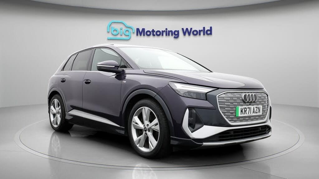 Our Audi Q4 e-tron is finished in Purple. Specification includes a range of fantastic features including £500 towards your finance deposit, Part Leather Seats, Lane Assist, S Line Body Styling, Privacy Glass, Heated Seats, Rear View Camera, Bluetooth, Parking Sensors, Audi Connect Specification information is supplied by CAPHPI and may vary to the actual car. This data does not form any part of a buying contact. Please check specification prior to purchase in-store. The MOT is valid until December 2026, visit bigmotoringworld.co.uk for more photos, a 360 tour, service history and a free HPI report. Were BIG on peace of mind and this Purple Audi Q4 e-tron has completed our comprehensive 200 point inspection and passed all checks. Its ready for you to drive away with immediate collection in-store. We include a 90-day warranty as standard plus an option to extend for up to 3 years. Reserve this car exclusively for you, safely and securely at bigmotoringworld.co.uk, with a fully refundable £99 deposit. Test drive before you buy, with no commitment, no hassle and a completely haggle free experience. Still searching and want to see thousands more cars? We are BIG on choice with over 8000 cars to choose from. Visit our award winning web site bigmotoringworld.co.uk. Were Big Motoring World and were BIG on what matters to you.