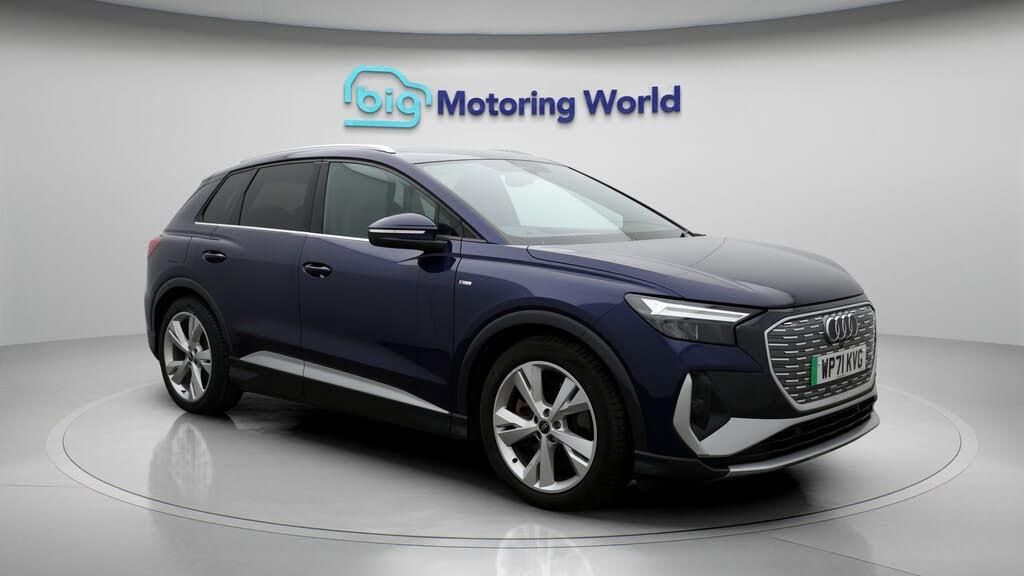 Our Audi Q4 e-tron is finished in Blue. Specification includes a range of fantastic features including £500 towards your finance deposit, Part Leather Seats, Apple CarPlay, Lane Assist, S Line Body Styling, Android Auto, Satellite Navigation, Privacy Glass, Heated Seats, Rear View Camera Specification information is supplied by CAPHPI and may vary to the actual car. This data does not form any part of a buying contact. Please check specification prior to purchase in-store. The MOT is valid until January 2027, visit bigmotoringworld.co.uk for more photos, a 360 tour, service history and a free HPI report. Were BIG on peace of mind and this Blue Audi Q4 e-tron has completed our comprehensive 200 point inspection and passed all checks. Its ready for you to drive away with immediate collection in-store. We include a 90-day warranty as standard plus an option to extend for up to 3 years. Reserve this car exclusively for you, safely and securely at bigmotoringworld.co.uk, with a fully refundable £99 deposit. Test drive before you buy, with no commitment, no hassle and a completely haggle free experience. Still searching and want to see thousands more cars? We are BIG on choice with over 8000 cars to choose from. Visit our award winning web site bigmotoringworld.co.uk. Were Big Motoring World and were BIG on what matters to you.